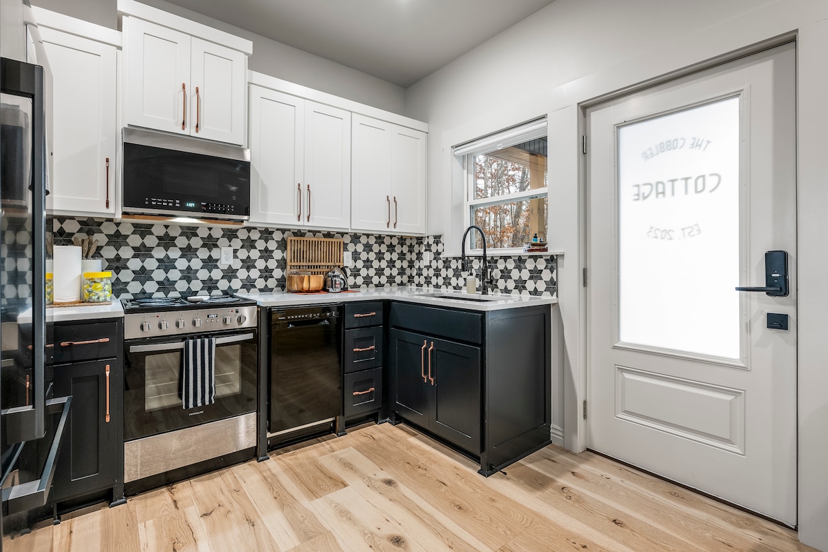 Guest experience is our top priority; with owners less than 10 mins. away, we are here to help if you need it! A private “duplex” style unit: full bathroom, stocked kitchen, living area, queen bedroom, outdoor deck space, bike wash, and woodsy backyard that connects DIRECTLY to Bella Vista’s Back 40. Cobbler is just moments from the action and a private, quiet space to retreat after hitting the trails or exploring NWArkansas. Driving into Downtown Bentonville is 20 minutes.