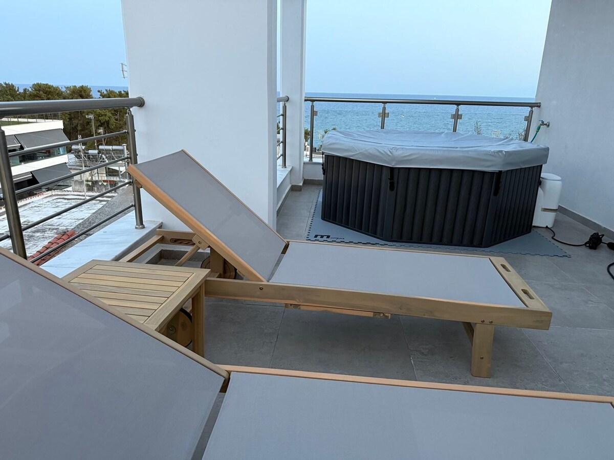 Un impresionante apartamento en la parte superior, segundo piso (solo por escaleras), situado justo en el agua. ¡Es cómodo, con un gran balcón y unas vistas impresionantes! Se encuentra en el centro de la ciudad y la playa es ideal para familias que buscan unas vacaciones tranquilas. Hay supermercados, chiringuitos y tabernas a poca distancia a pie del apartamento. El apartamento tiene dos dormitorios, sala de estar con sofá cama, cocina totalmente equipada, aseo y ducha. ¡A solo 20 minutos en coche del aeropuerto y a 25 minutos de Tesalónica!