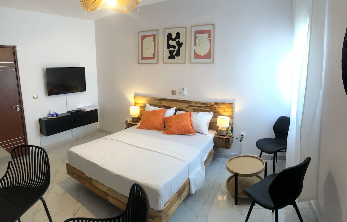 Situado en el corazón de Abiyán y cerca de todas las comodidades, este apartamento de tres habitaciones (2 dormitorios independientes + sala de estar), es ideal para sus estancias de negocios o unas vacaciones en familia. Destaca por su diseño moderno y elegante, que combina estilo y confort. Los acabados de alta gama, la cuidada decoración y las comodidades modernas (cocina equipada, Wi-Fi rápido, televisión inteligente, etc.) le ofrecerán una experiencia inolvidable.