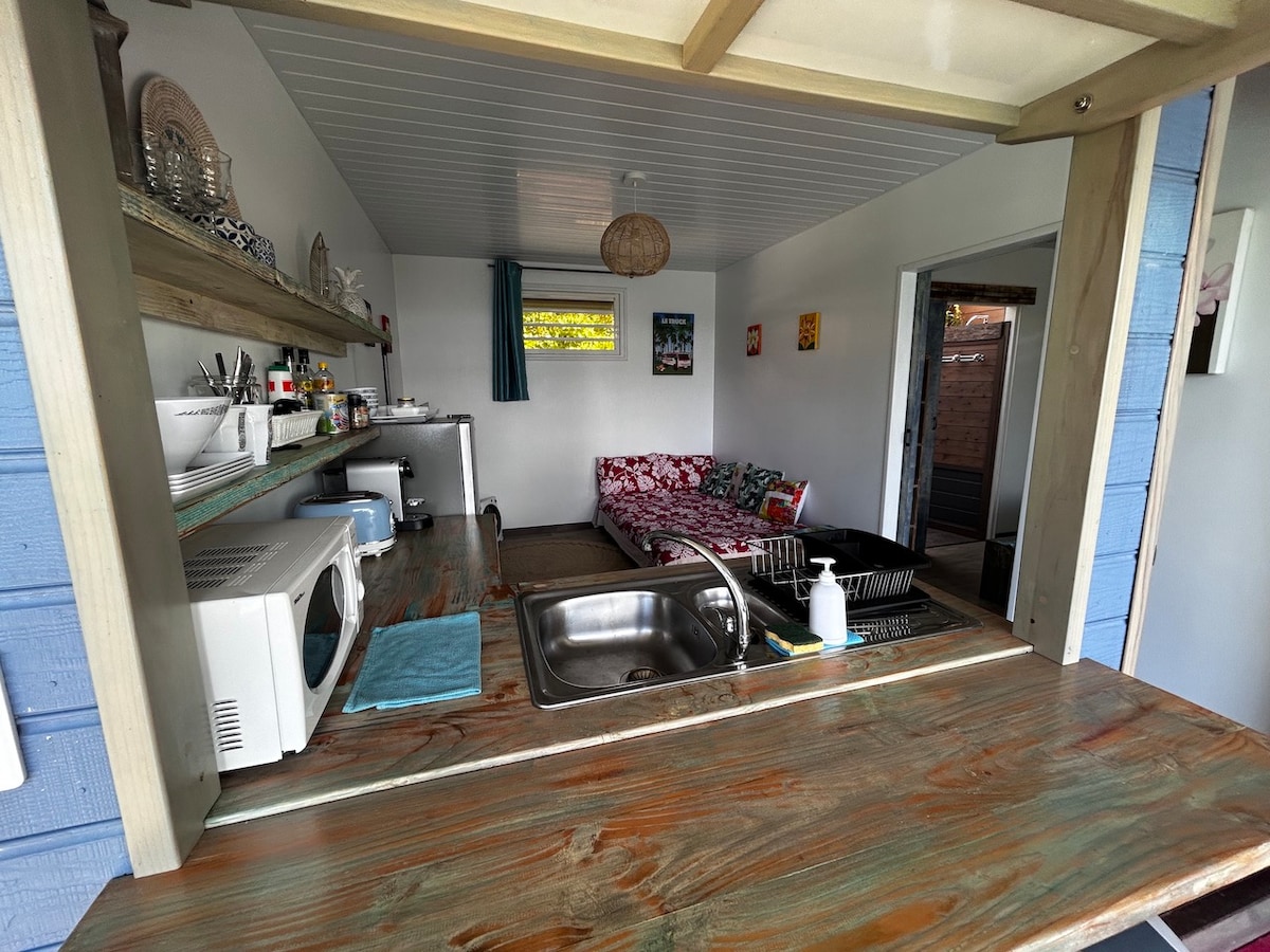Ia Orana, si vous cherchez un bungalow insolite, niché en pleine nature, avec une magnifique vue mer, vous êtes au bon endroit! Il est constitué de 2 chambres avec lits doubles, d’une kitchenette et d’une salle de bain privative, pour une immersion totale dans la nature Tahitienne. Disposant d’un espace extérieur comme intérieur, vous serez au calme dans ce lieu plein de charme. Natif de Tahiti et capitaine d'excursion je pourrais vous proposer une sortie dans le lagon avec vos amis ou famille