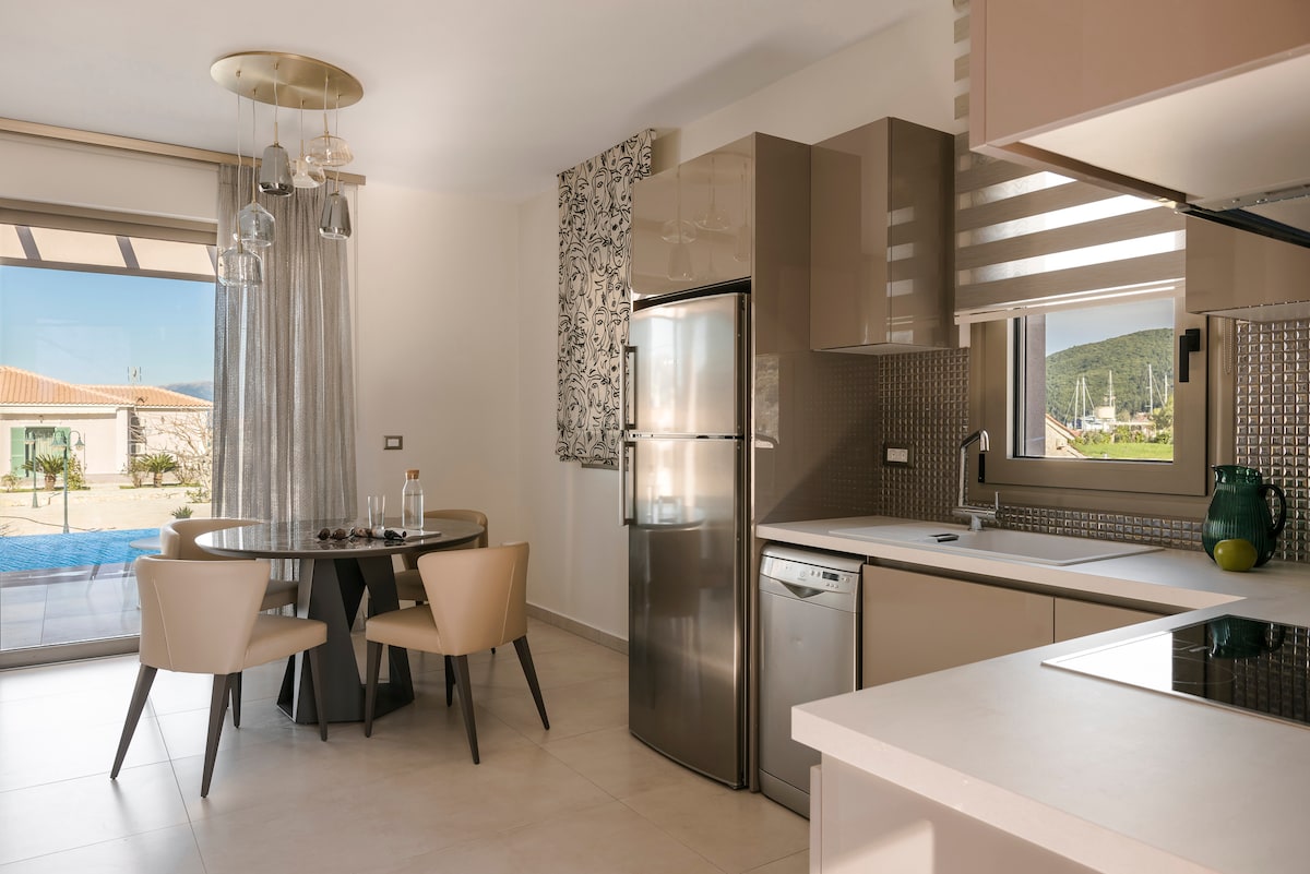 Una casa de nueva construcción abre sus puertas este año, por primera vez para dar la bienvenida incluso a los huéspedes más exigentes. La privacidad que ofrece la villa junto con la arquitectura que combina lo moderno con la decoración minimalista, en combinación con los espacios cómodos y la impresionante fachada con vistas al azul infinito del mar Jónico, lo convierten en un lugar acogedor y encantador. ¡Disfruta de tu estancia en este espacio relajante y elegante!