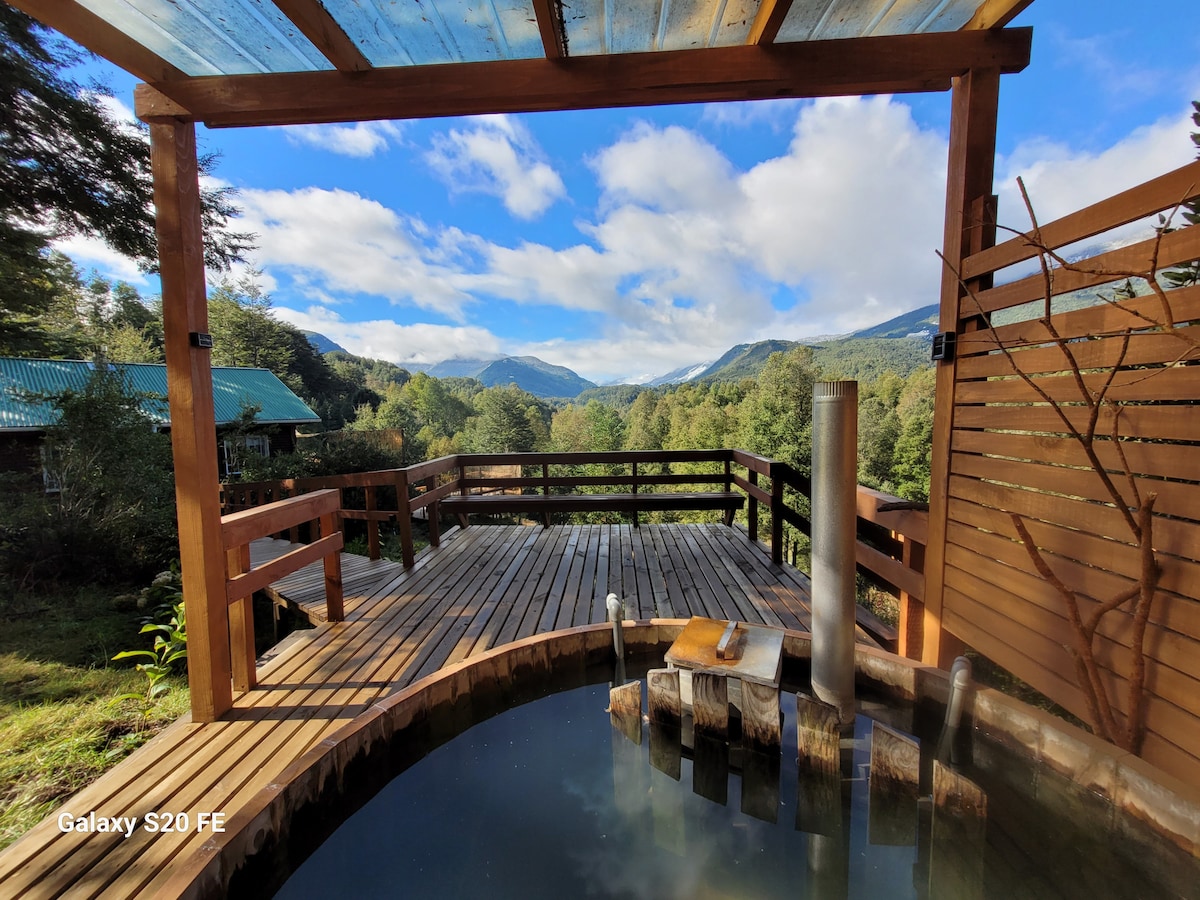 Somos Cabañas Vistas Pucón. La Cabaña con tinaja propia , se tempera automáticamente entre las 5pm a 9pm a una temperatura ideal (38°C)INCLUIDA EN EL PRECIO. Ademas tiene Aire acondicionado centralizado y wifi. Estamos en un entorno natural hermoso, con una vista privilegiada al lago,montañas, al valle de Pucón y en la noche a un cielo estrellado hermoso. Cabañas Vistas Pucón está ubicada a 7 Km. (8-10 min.) del centro de Pucón, y muy cerca de otros lugares interesantes y atractivos.