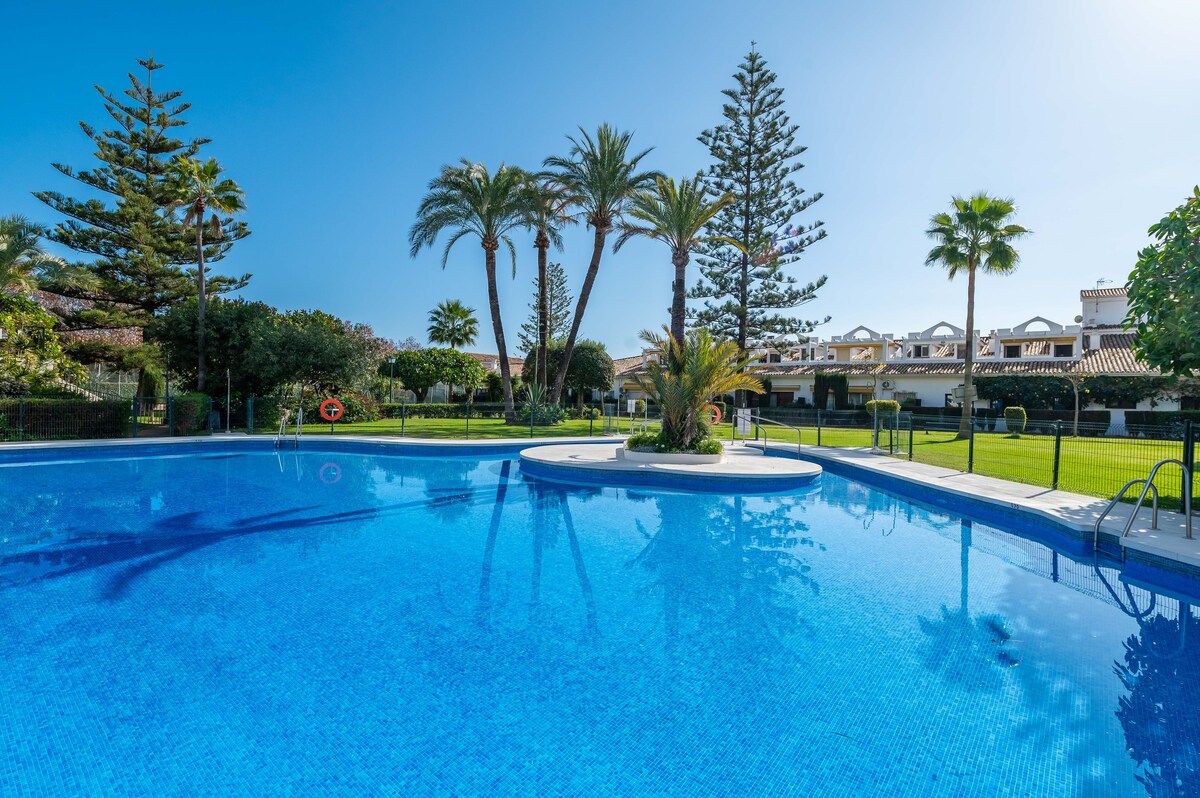 Recently back on Airbnb. Luxuriously furnished apartment located in Puente Romano phase 2 and fully equipped. The apartment is located on the Golden Mile next to the 5 star Nobu hotel. The beach with fun - and sports activities is nearby. Overlooking beautiful communal gardens and swimming pools. Lots of nice trendy restaurants/bars. Car is not necessary. The fashionable Puerto Banus and Marbella old town can be reached on foot (35 minutes) or by bus/taxi (in front of the door).