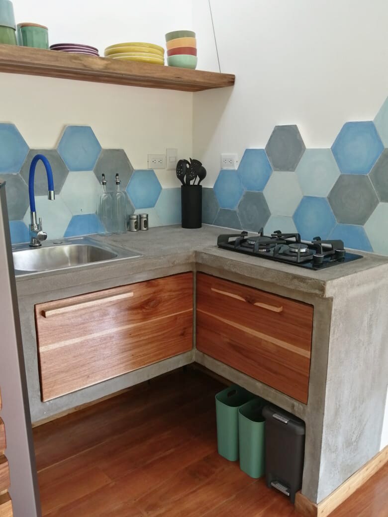 Lucía es uno de cuatro apartamentos completamente amoblados y equipados cerca de unas de las playas más lindas del Caribe Sur de Costa Rica (a solo 300 metros de Punta Cocles; 3 Km de Playa Chiquita, 6 Km de Punta Uva 7; 10 Km de Manzanillo o 4Km de Puerto Viejo). Con capacidad para 4 personas, 2 habitaciones con 2 camas matrimoniales, un baño, área social con sala/comedor/cocina, 1 sofá cama en la sala y balcón con vista al área social externa; área social con rancho multiuso y piscina.