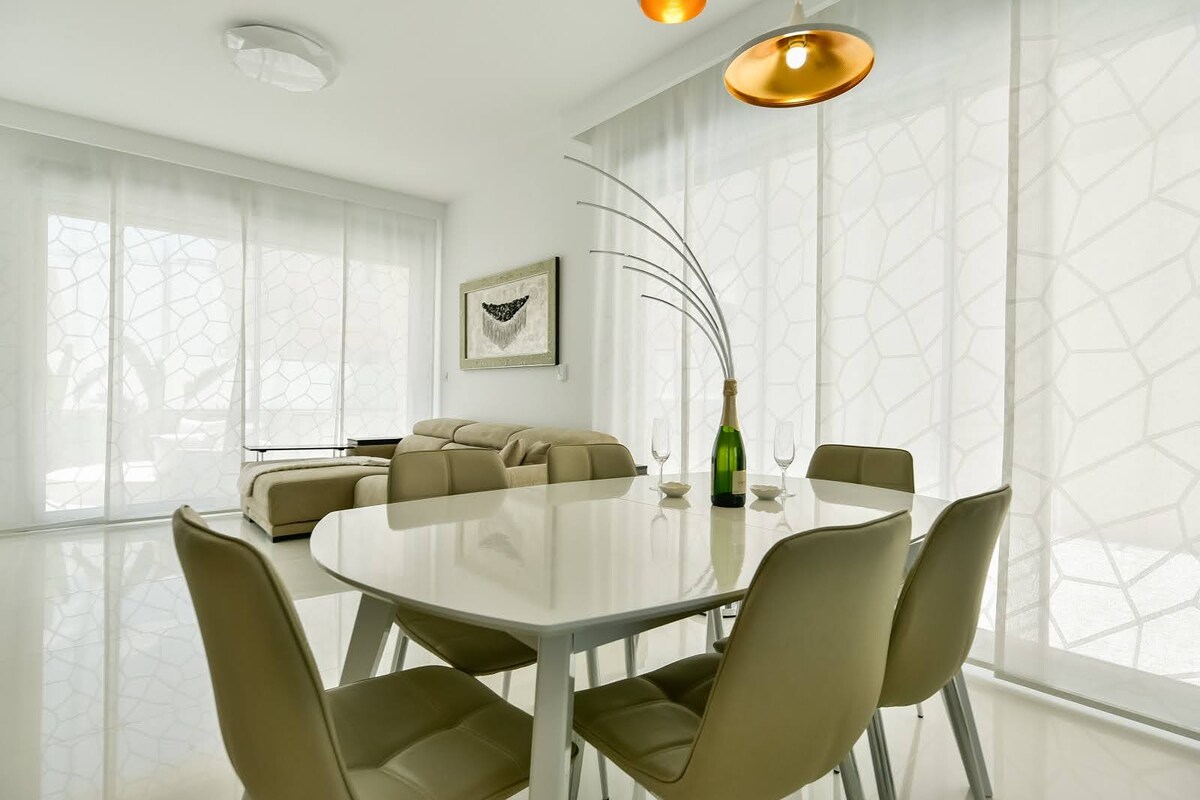 Buscas unas vacaciones en una localización moderna, a pocos metros de la playa? 'Bianca Beach' es perfecto para disfrutar en pareja, con familia o amigos. Construido en 2020, este residencial privado y completamente cerrado con muro perimetral tiene 2 piscinas. Está a 2 minutos andando de la playa Mil Palmeras, con 10 meses de sol al año. Este apartamento en planta baja está completamente equipado, con mucha luz. Lo más atractivo son sus terrazas, una con orientación sur y otra norte.