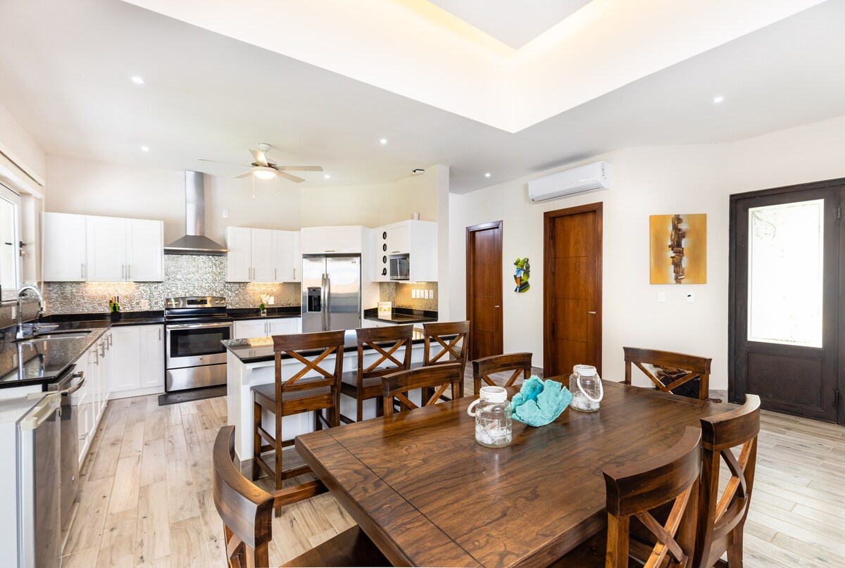 Tu estadía en Casa Markai incluirá: ☆ Langosta Beach Club Access. Sala de estar☆ al aire libre. ☆ Cocina totalmente equipada ☆ 1 estacionamiento Internet ☆ de alta velocidad. ☆ Aire acondicionado ☆ TV de 65pulgadas Bienvenido a Casa Markai, un hermoso departamento ubicado frente a Playa Langosta. Perfecto para parejas o amigos a los que les gusta pasar un rato relajante y aventuras de surf; este lugar ofrece 2 dormitorios, uno con entrada independiente, baños completos y aire acondicionado.