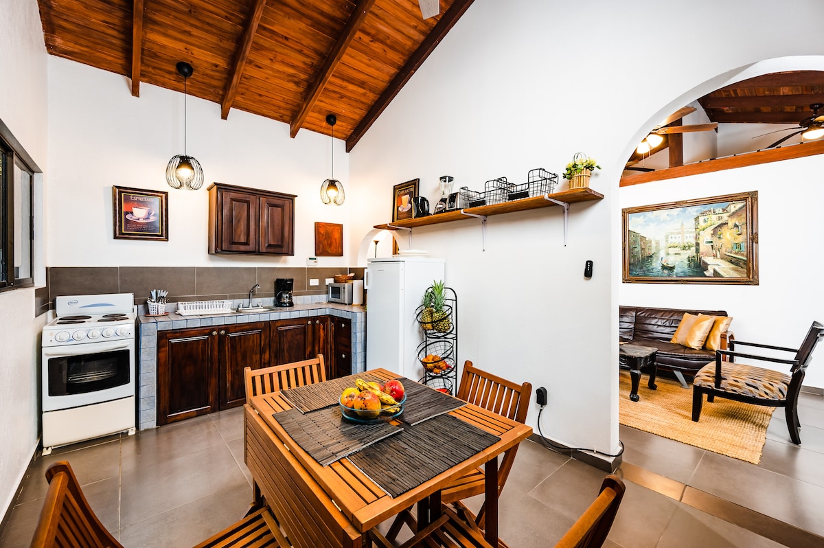 ¡Pasea por las playas Penca y Potrero! Amplia villa de 1 dormitorio y 1 baño, a pocos pasos de restaurantes, mercado de agricultores, vida nocturna y tiendas de comestibles. Esta casa renovada cuenta con seguridad 24/7, servicios de conserjería, patio privado, piscina grande y jardines cuidados. ¡La villa tiene un dormitorio tamaño king, un baño nuevo con doble lavabo, un espacio de trabajo dedicado con un escritorio grande, Internet de malla de 200 Mbps y un cómodo sofá cama La-Z-Boy! Incluye 2 masajes terapéuticos de 30 minutos, nuestro regalo para ti.
