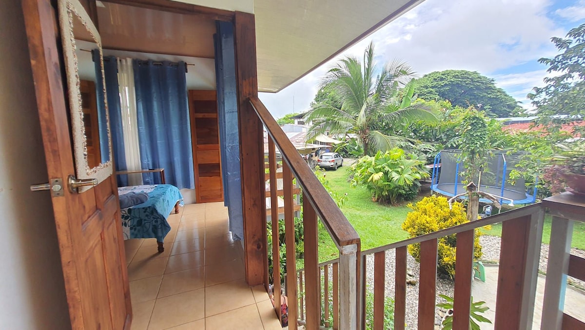 Atardecer de miel se encuentra dentro de una propiedad de áreas comunes compartidas (piscina, jardín, parqueo,lavadora) A/C ó ventilador, cocina full equipada, BBQ, WIFI 100MB, NO TV, NO AGUA CALIENTE. La anfitriona vive en la misma propiedad, siempre dispuesta a ayudar, te puedo ayudar con info de tours. A 300 mtrs de los comercios principales, a 800 mtrs de la playa, etc. Lugar tranquilo y con cámaras de seguridad, amplio parqueo. Puedes ver lapas, tucanes, iguanas, etc, desde el balcon.