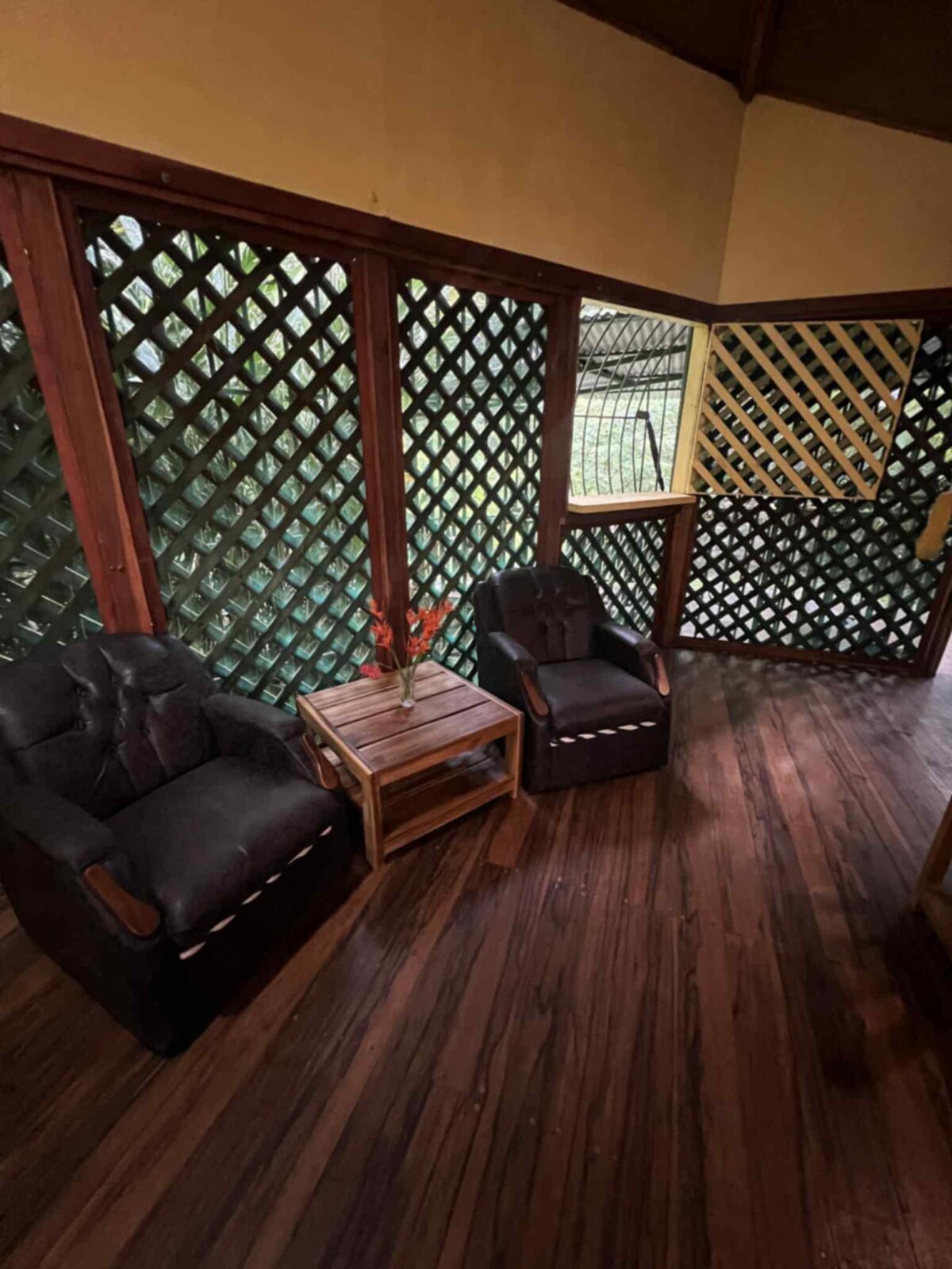 La casa está situada en una hermosa colina en la selva, y está construida específicamente hacia una de las vistas más hermosas que experimentarás. Está rodeada de muchos nidos de guacamayos, por lo que son visitantes habituales durante las horas de la puesta de sol. También puedes ver monos araña, monos aulladores, perezosos y muchos más en las ramas de árboles antiguos en la propiedad. ¡Muchas frutas crecen en el jardín y puedes disfrutar de cualquiera que esté en temporada cuando nos visites!