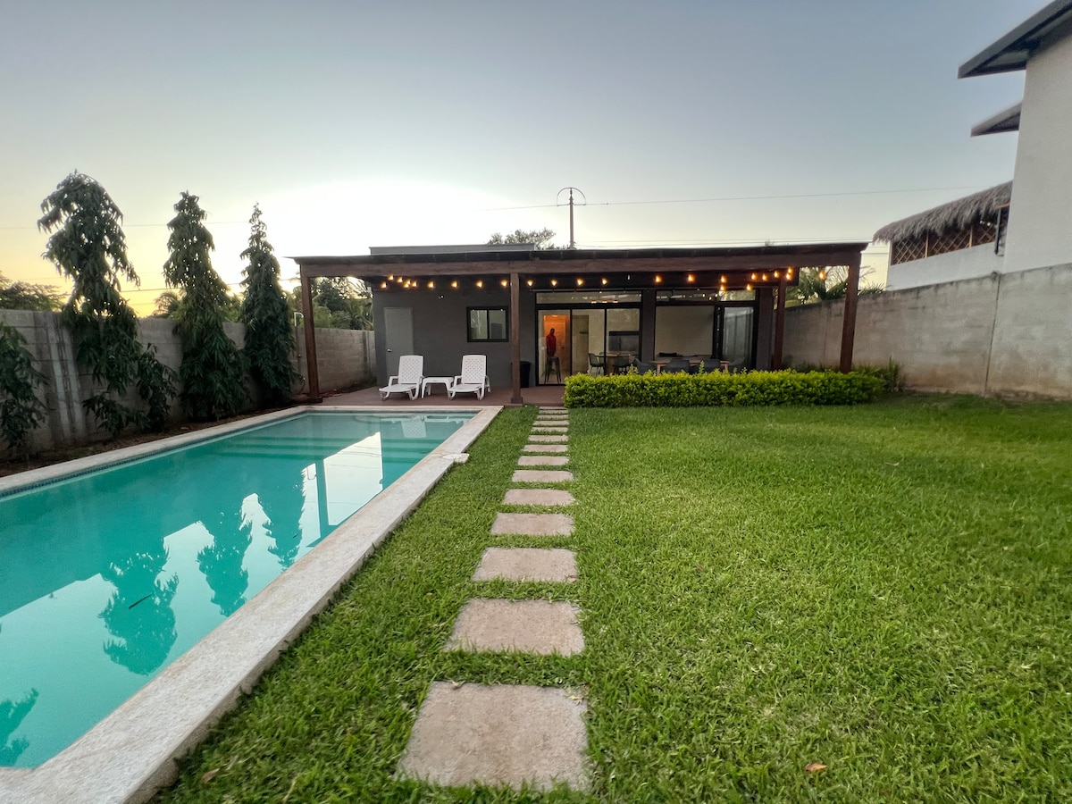 Bienvenidos a Casa Cutuq, un refugio con estilo rústico y relajante, rodeado de un jardín tropical de ensueño. Cuenta con piscina privada, habitación con A/C, kitchenette equipada, y barbacoa; ideal para descansar, disfrutar del sol, y reconectar con la naturaleza. A solo minutos de El Tunco, Surf City y centros comerciales. Importante: por normas de la residencial, no se permite el ingreso después de las 10pm