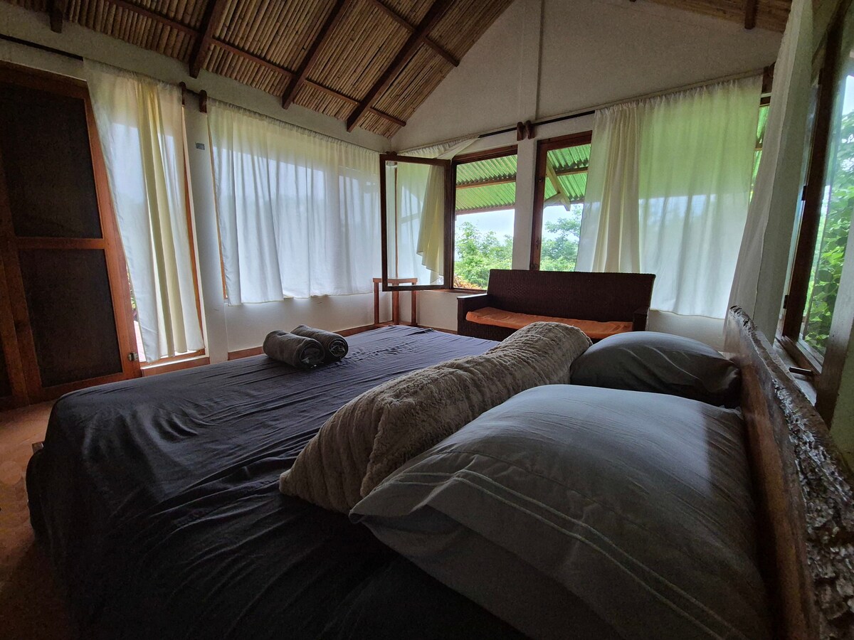 Una pequeña y bonita cabaña situada en la exuberante naturaleza salvaje de la isla de Ometepe. Ubicada en una granja orgánica familiar, con vistas tranquilas al volcán Concepción y al atardecer en el lago. Disfruta de tu propio espacio privado y tranquilo, con una cómoda cama tamaño king, ducha al aire libre con agua caliente y vistas impresionantes y tus propios inodoros de compostaje. Prepara tus comidas en la cocina de la granja. Verduras de temporada, hierbas y productos agrícolas orgánicos locales como miel y yogur están disponibles para comprar para tus comidas.