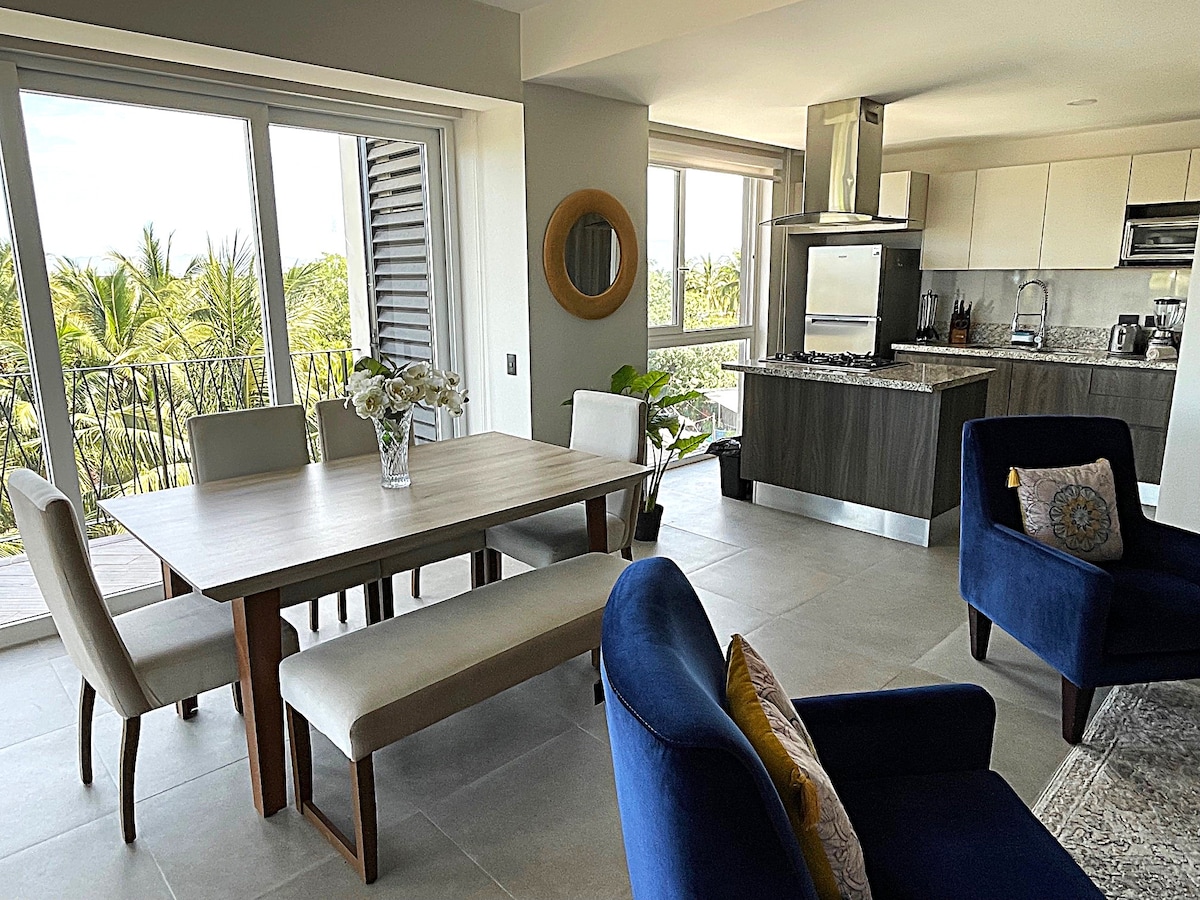 Escapada junto al mar en VBucerías. Disfruta de un apartamento nuevo, moderno y acogedor en una exclusiva urbanización frente a la playa. Con acceso directo a la playa, disfruta de servicios de primera clase: piscina con jacuzzi, azotea con barbacoa para ver la puesta de sol, gimnasio, restaurante, fogata, sala de juegos, sala de masajes y seguridad 24/7. La unidad de Street View cuenta con 1 dormitorio, 2 baños, una cocina totalmente equipada, lavandería y aparcamiento privado. Ideal para relajarse, disfrutar y sentirse como en casa en la playa.