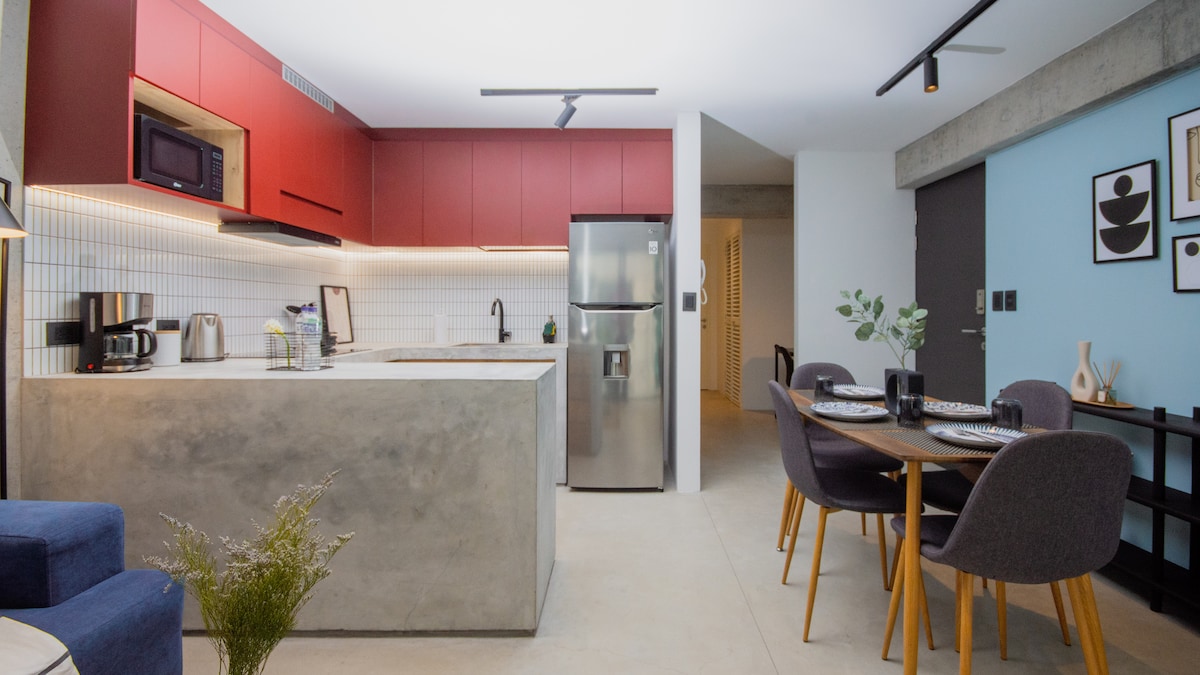 Bello loft decorado por la artista peruana Ale Grau, en el corazón de Barranco, el distrito más vibrante de Lima, en la emblemática Avenida Pedro de Osma. A un paso de galerías de arte, museos, bares, cafes y destacada gastronomía, junto a tres de los mejores restaurantes del mundo y muy cerca al mar. Usa mi guía turística hecha para ti. Llegada autónoma, parking gratuito, FAST wifi, smart TV, cama Queen, aire acondicionado, cocina equipada, escritorio y lavadora & secadora en el edificio.
