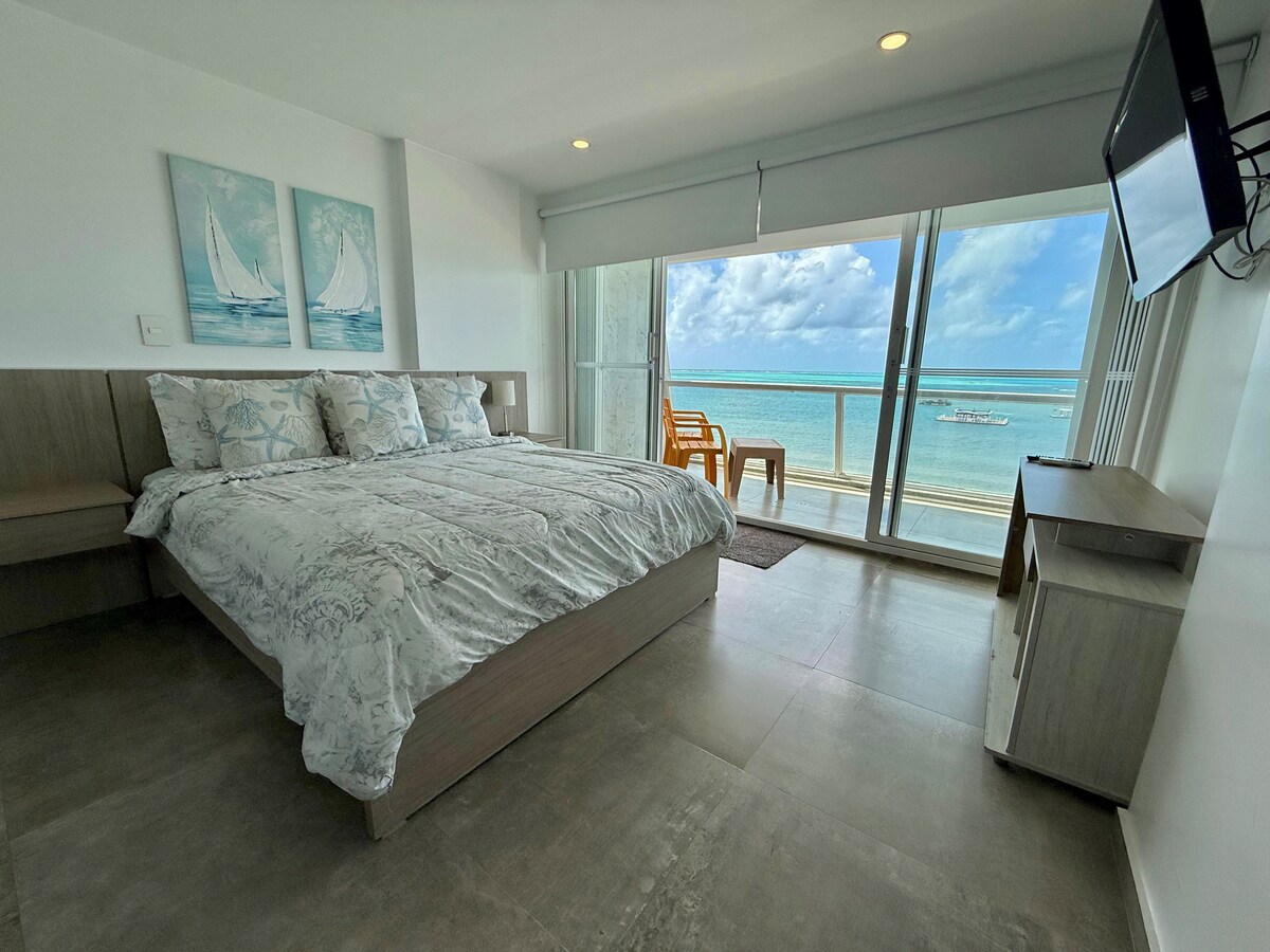 Despiértese con la impresionante vista del horizonte. Este hermoso apartamento tiene un ambiente relajante, urbano y familiar en todas partes y una maravillosa vista. Relájese en el balcón mientras disfruta del agua cristalina del mar de 7 colores y escápese a un condominio que cuenta con vista al mar desde todas las habitaciones y un balcón envolvente, en un sector tranquilo, seguro y muy cerca a la playa, restaurantes y comercio. El edificio tiene seguridad 24 horas.