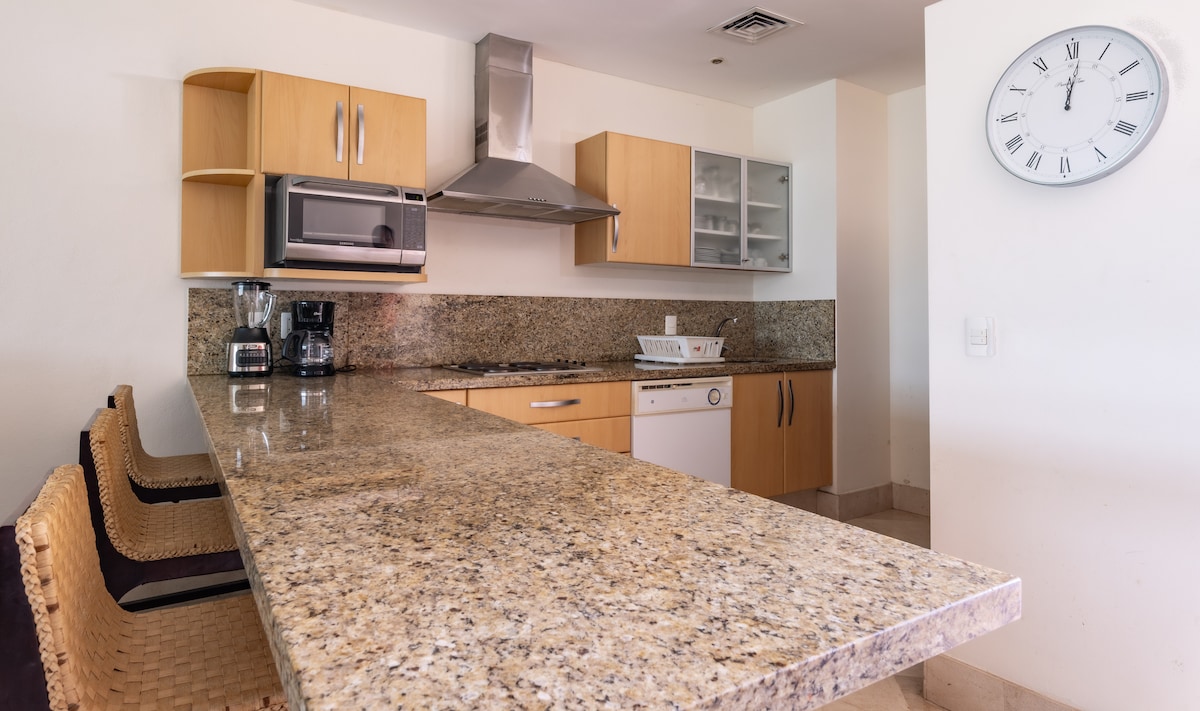 This three bedrooms fully furnished unit, is on one of the most beautiful beaches on the Bay of Banderas. You will enjoy each day walking, windsurfing, beachcombing, and swimming. This is a true tropical paradise. This Sayil Condominium's Unit has all the conveniences including dishwasher, washer and dryer, satellite TV and Wi-Fi. Sit and listen to the waves while enjoying a novel. The kitchen is fully equipped with stovetop, microwave, toaster and oven.