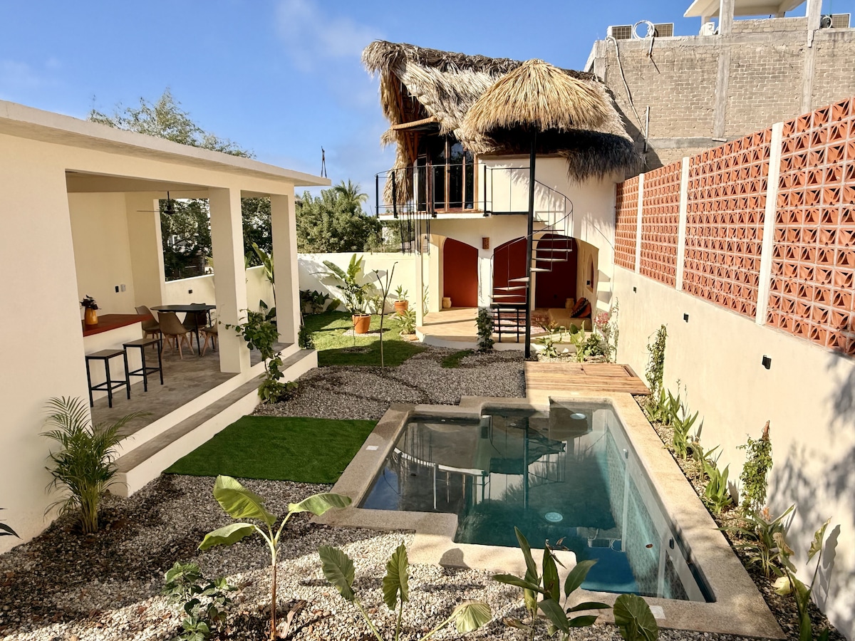 The perfect place to rest in Puerto Escondido. 200 meters from the beach, private pool surrounded by nature, blurring the meaning of inside and out, you will enjoy one of the best of Puerto Escondido's designer homes. With its lofted style palapa, Teo is the ideal retreat to make your stay unforgettable. Also equipped with Starlink to stay connected. Our house manager, Juanita, will help you keep the house clean and prepare food, while you enjoy time at the beach or pool. WELCOME TO CASA TEO