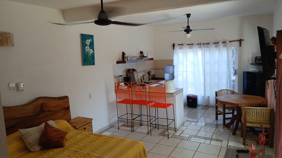 Loft con cama king, a/c, cocina, baño y alberca