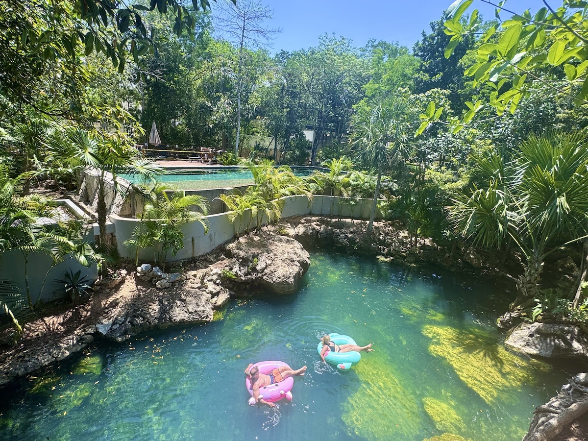 Oasis tropical con cenote y piscina, ¡a poca distancia de la playa!
