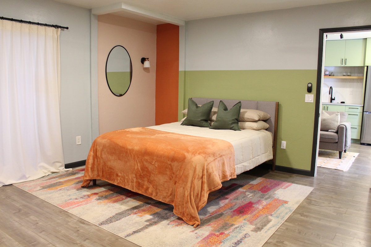 Estudio relajante perfecto para 2 personas situado en Playas de Tijuana. Cuenta con una cama tamaño king, una mesa de comedor, baño completo, escritorio, TV grande y una cocina pequeña con utensilios básicos. A solo 15 minutos a pie de la playa y cerca de restaurantes, cafeterías y bares. Ideal para parejas, viajeros solitarios, viajeros de negocios o cualquier persona que busque comodidad. Estamos a 20 minutos en coche de la playa de Rosarito y a 15 minutos del centro de Tijuana. ¡Todo lo que buscas está aquí!