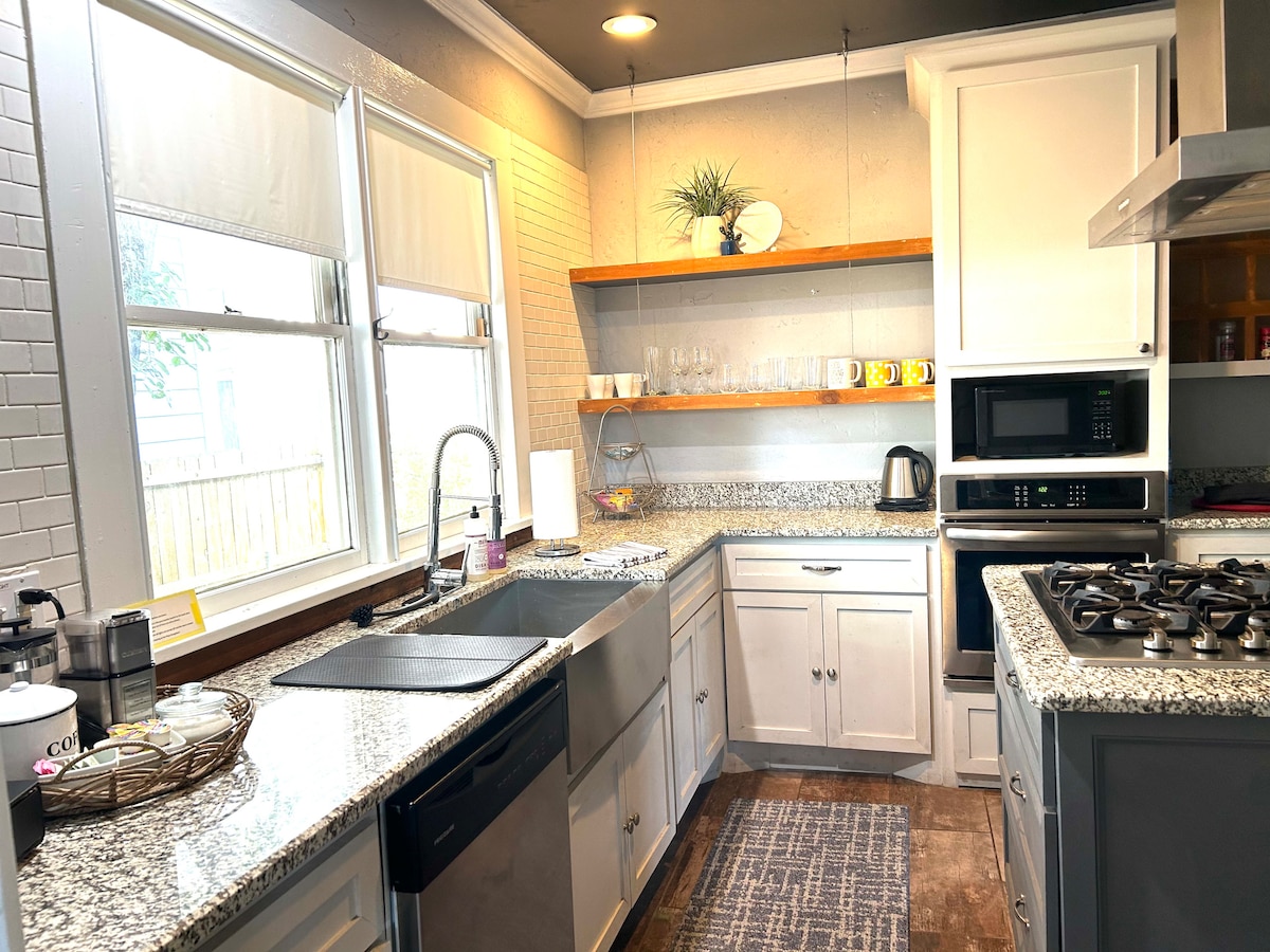 ¡Bienvenido a nuestro acogedor hogar en el corazón de Gatewood y Plaza District de OKC! A pocos pasos del vibrante Plaza District, disfruta de los mejores restaurantes locales, cafeterías y tiendas únicas. Nuestra casa de 2 dormitorios y 1 baño combina el encanto histórico con las comodidades modernas, con una cómoda sala de estar, cocina totalmente equipada y un tranquilo patio trasero. Con acceso rápido al centro de la ciudad y a las atracciones locales, este es el lugar perfecto para explorar Oklahoma City. ¡Ideal para parejas, familias pequeñas y grupos!