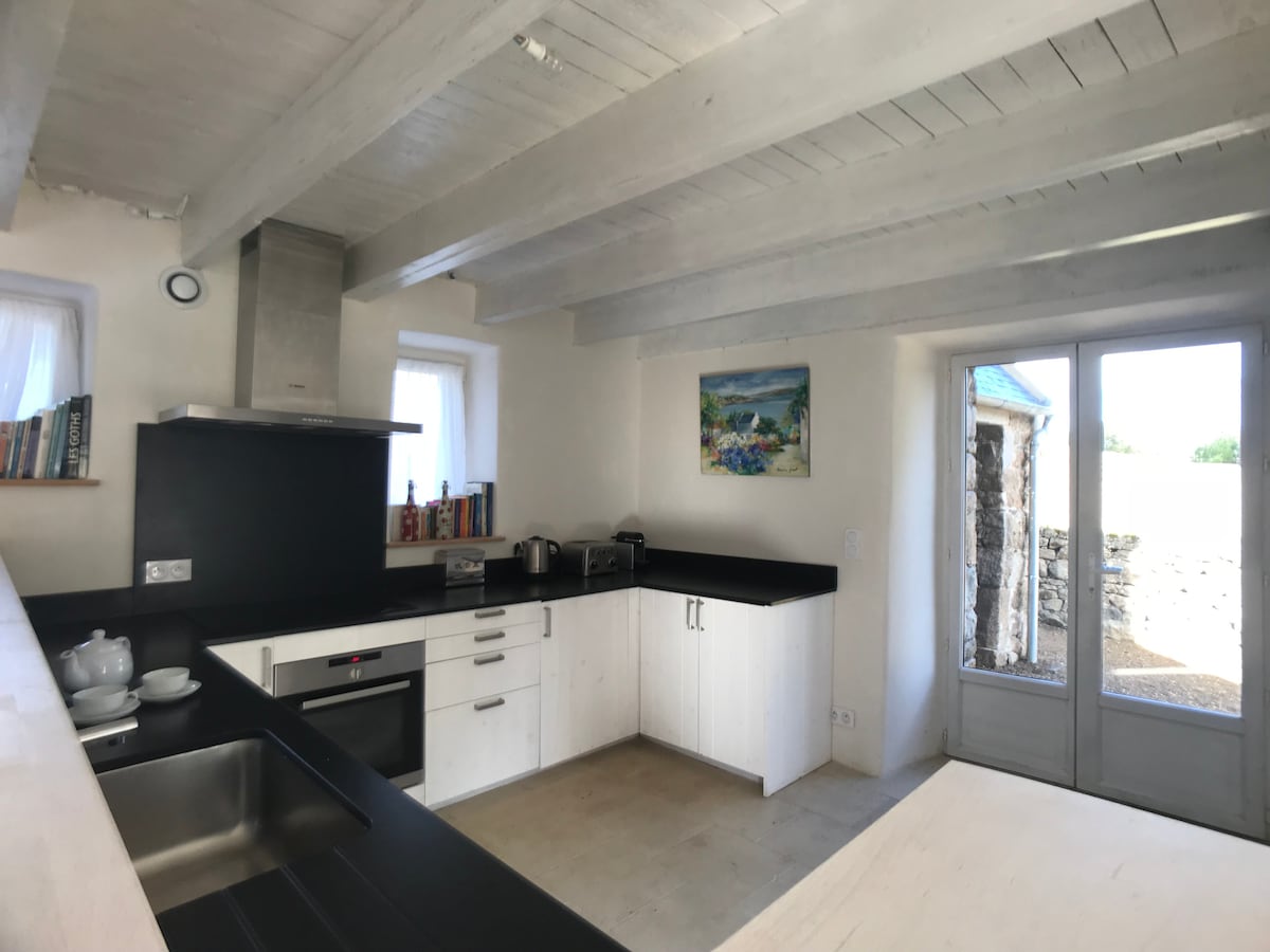Jolie maison bretonne dans les Monts d'Arrée, à proximité du lac du Drennec et ses plages aménagées, la forêt d'Huelgoat, la vallée des Saints, Morlaix et sa baie, Roscoff, Carantec, Brest, Quimper. Venez vous ressourcer dans notre maison calme et élégante, rénovée avec goût par nos soins avec des matériaux nobles et naturels ( bois, pierre, chaux et chanvre)!!Le chargement des voitures électriques et hybrides est totalement interdit ; les prises n'étant pas adaptées (risque d'incendie)….
