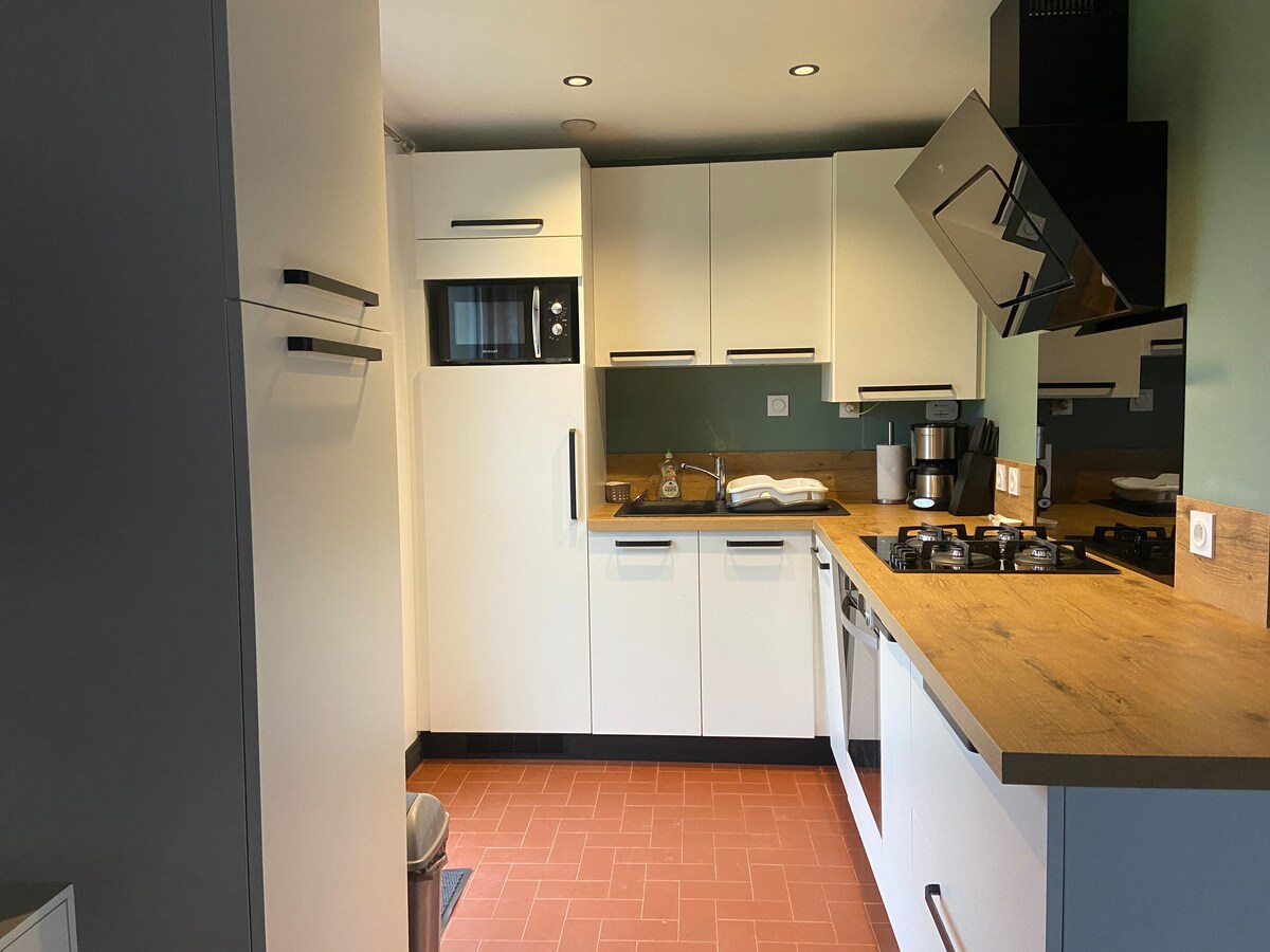 Hemos renovado esta pequeña granja que pertenecía a nuestros abuelos. Está rodeada de campos y praderas: ¡tranquilidad asegurada! A 4 km del mar por carretera, estamos un poco más cerca en línea recta y tendrá la oportunidad de verlo al despertarse. Sus compañeros de cuatro patas son bienvenidos, sujeto a la cohabitación pacífica con nuestros animales. La casa está adosada a nuestra casa con acceso y espacios exteriores privados.
