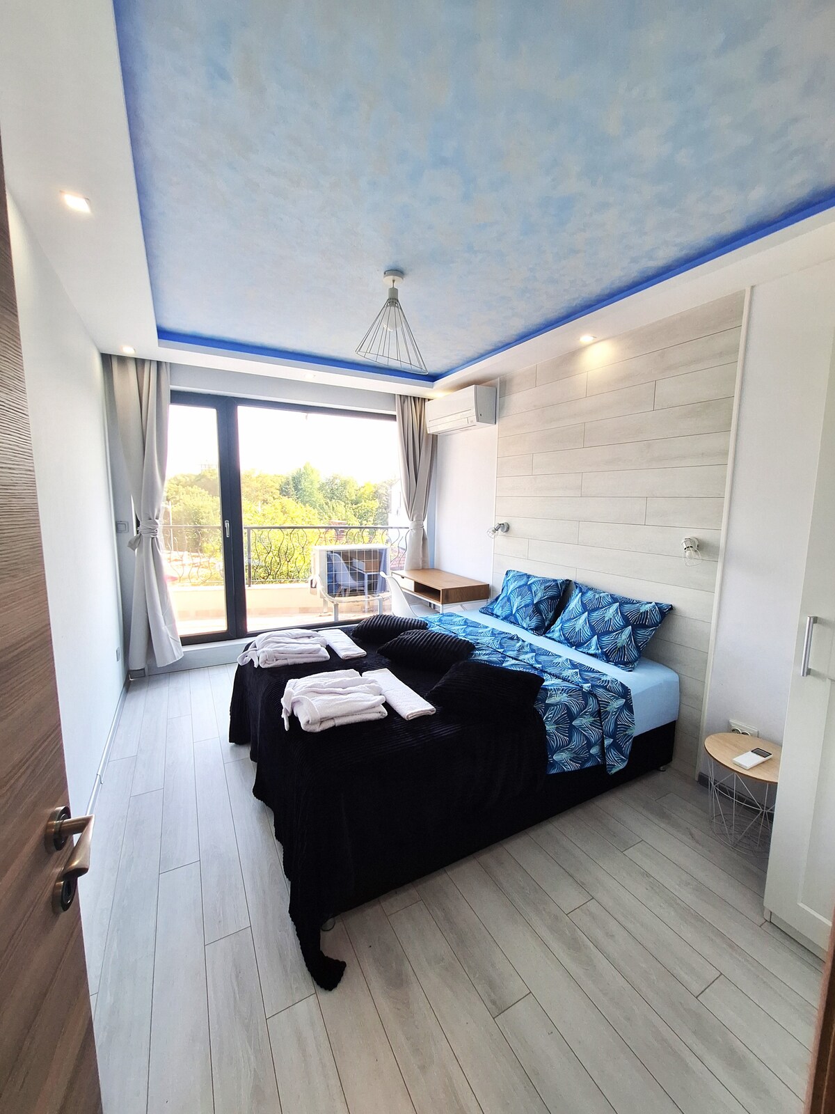 ¡Te damos la bienvenida a tu encantador refugio en Plovdiv! Este elegante apartamento cuenta con un dormitorio sereno, donde las lujosas sábanas y los colores cálidos invitan a un sueño rejuvenecedor. Pisa la acogedora terraza, perfecta para saborear el café de la mañana o los cócteles de la noche. Ubicado en el corazón de Plovdiv, este tranquilo oasis promete una estancia inolvidable.
