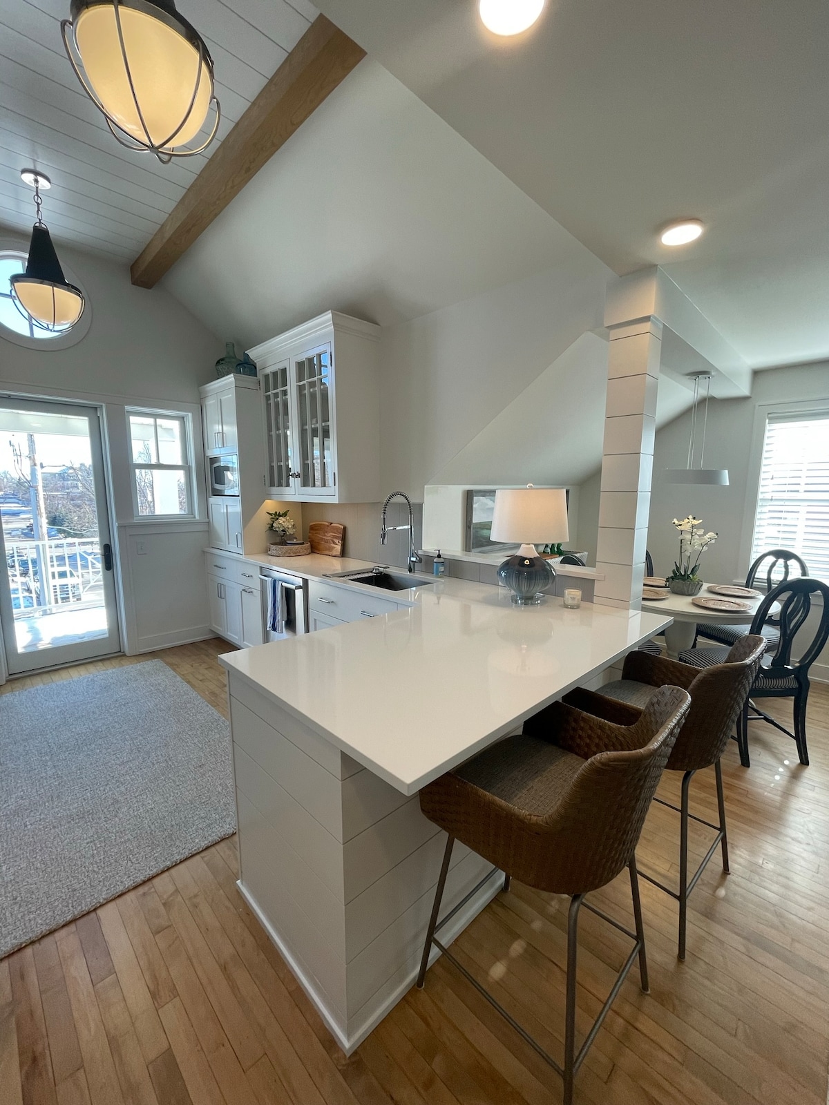 Starting April 1, 2026: 30-day minimum stay. Message for details. The perfect blend of historic Wayzata with modern amenities. Award-winning 3BR upper duplex renovated by Pillar Homes. Two full baths with heated floors. Bright new kitchen with solid surfaces and stainless appliances. Nautical theme rooted in Wayzata history. Gas fireplace, hardwood floors, deck views of Lake Minnetonka. Walk to Wayzata Depot, beach, shops, and restaurants. If unavailable, check the lower unit listing.