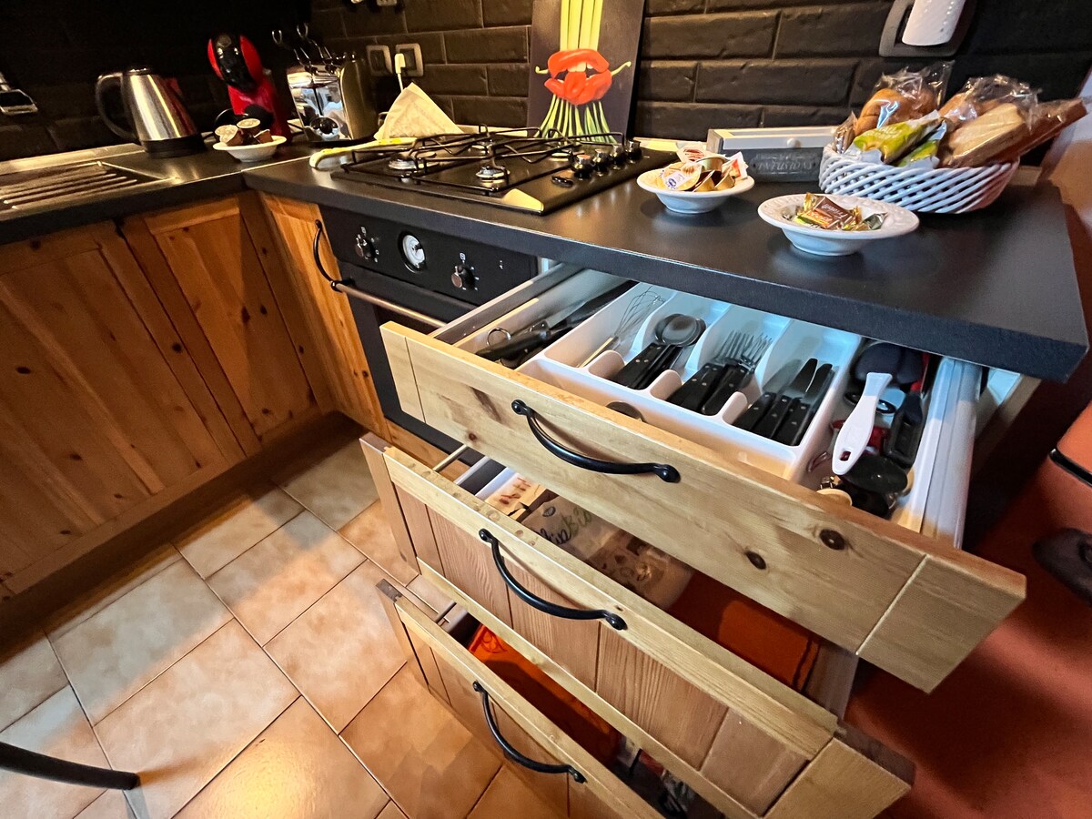 ¡La Fossa ofrece esta romántica casa de campo ubicada en un bosque prístino con una hermosa vista panorámica de las montañas que puedes disfrutar directamente desde la cama! La cabaña forma parte de un pequeño grupo de tres casas independientes. Tiene dos dormitorios y un baño de mosaico. El desayuno italiano, con productos caseros, está incluido en el precio.