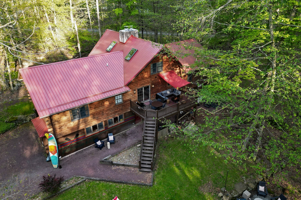 Un impresionante chalet idealmente situado en las montañas Pocono. ¡Tu destino para una escapada de fin de semana o una estancia más larga durante todo el año! En el exterior se puede disfrutar de un entorno natural en una hermosa propiedad arbolada privada de 1 acre, jacuzzi, dos fogatas, una terraza para el café de la mañana o una deliciosa barbacoa. Nuestro alojamiento ofrece un ambiente interior tranquilo y está convenientemente ubicado cerca de todas las actividades de temporada de las montañas Pocono. Tanto si quieres relajarte como recargar energías, nuestro alojamiento es el refugio perfecto.