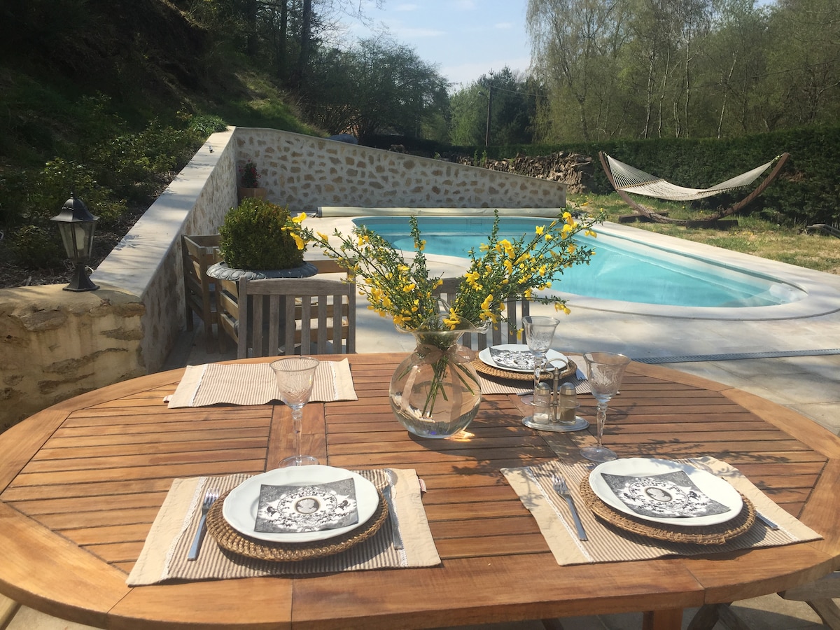 Ferme du 18ème siècle, restaurée avec goût, piscine extérieure chauffée de juin à septembre, magnifique terrasse, au coeur du charmant village de Poigny-la-forêt, 10 mn de Rambouillet, 45 mn de Paris en voiture, 35 mn en train. Nombreuses promenades et visites touristiques en vallée de Chevreuse. RDC, cuisine ouverte sur double séjour, SDB avec WC. 1 chambre au RDC. A l'étage, 2 chambres, SDB avec WC. Linge de lit et toilette fourni.