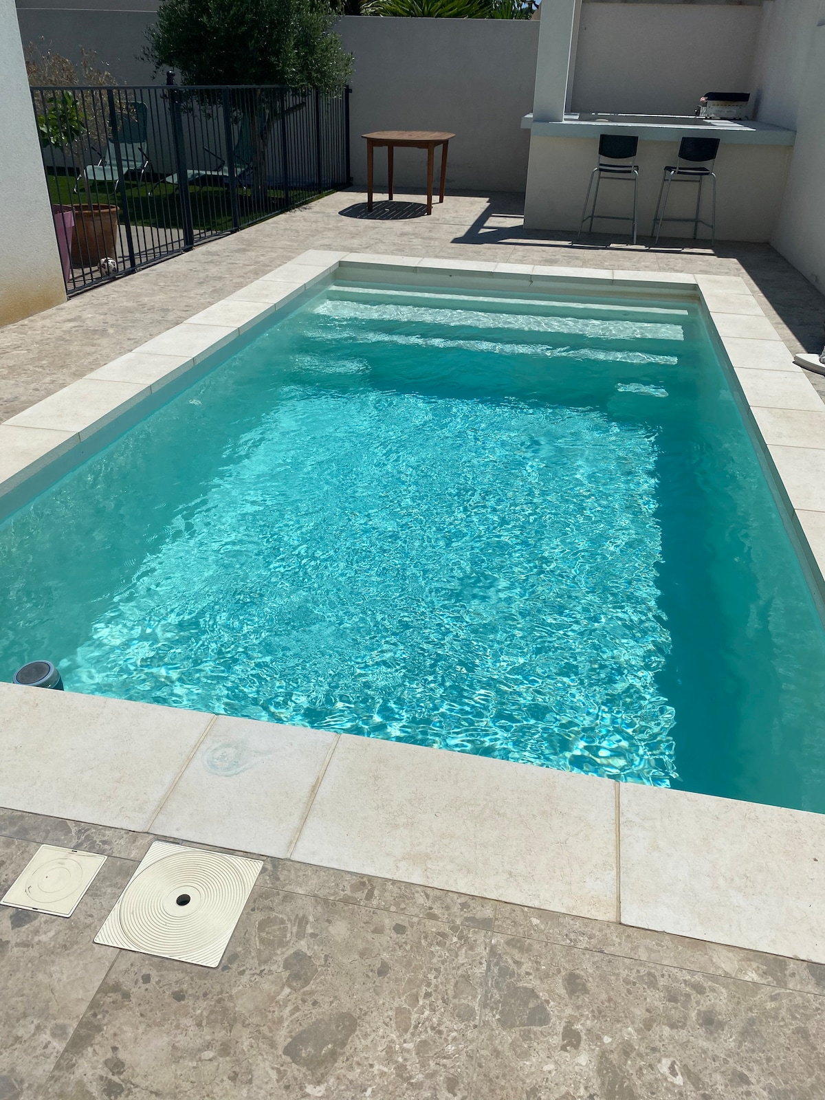 El alojamiento está situado cerca de Béziers, en la planta baja de una villa. Está totalmente dedicado a ti con entrada privada, 2 dormitorios, 1 sala de estar, 1 cocina equipada y 1 baño. Capacidad máxima recomendada: 4 adultos y 2 niños. Tienes acceso a un jardín con una terraza de madera que incluye una mesa y una plancha para asar. Una gran piscina está abierta (9x4,5 m) entre mediados de junio y mediados de septiembre. La ubicación es ideal si te gusta el sol (300 días), el mar (a 20 minutos) o las caminatas.