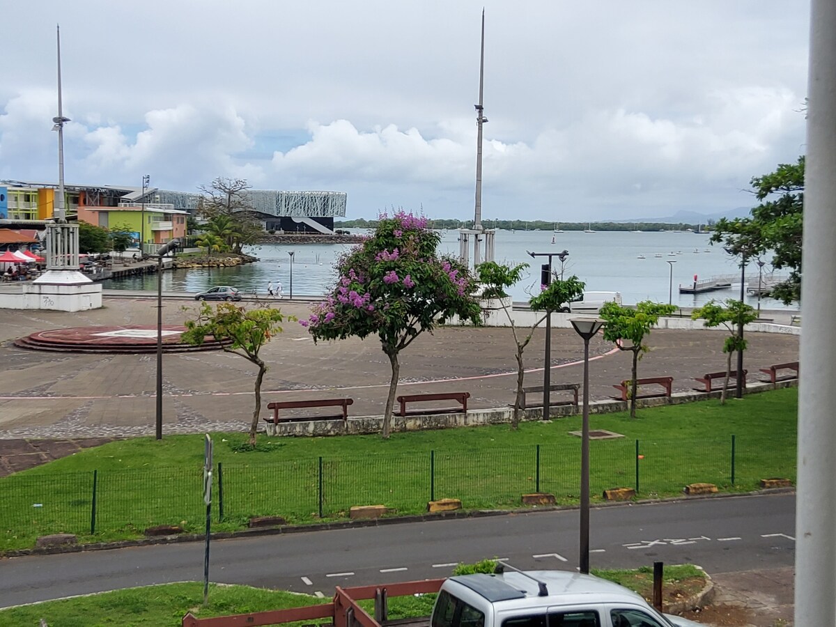 Elegante apartamento T2 con vistas al mar🌊, frente a la terminal de cruceros 🚢 y a 15 minutos a pie de la estación marítima para embarcar hacia Marie-Galante, Dominica, Martinica y Santa Lucía. Ideal para parejas, viajeros en escala o estancias profesionales. A dos pasos del Memorial ACTe, de numerosos restaurantes y bares animados, y a solo 10 minutos en coche de las paradisíacas playas de Gosier, como la de la Datcha.