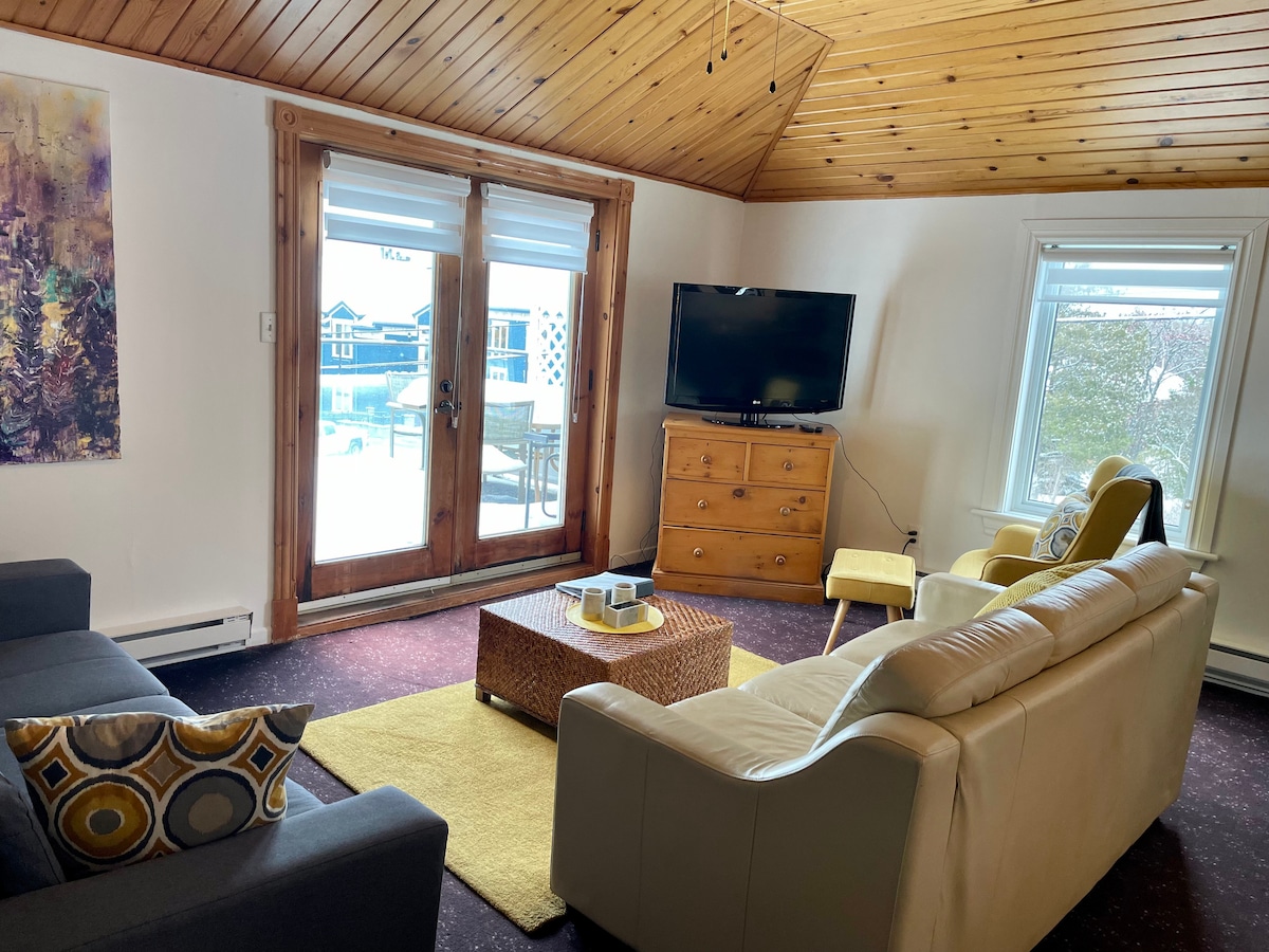 Amantes de la naturaleza, quedaréis deslumbrados por la majestuosa belleza que rodea este apartamento, situado en La Malbaie, en la tranquila zona de Pointe-au-Pic. Apartamento de 4 habitaciones y 1/2, en la planta baja, con grandes ventanales para admirar el río y las montañas: ¡contacto directo con la naturaleza!
