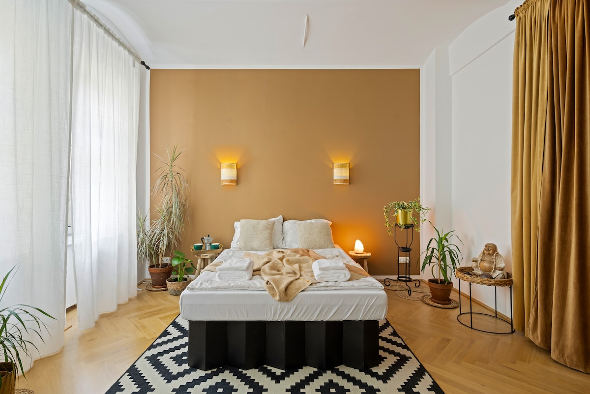 Inglés: ¿Vida urbana pero cómoda? Bienvenido al Nest, donde Viena se siente como un pueblo mientras que la vibrante vida de la ciudad está a solo 10 minutos. El espacioso apartamento ofrece todas las comodidades que tu corazón desea: internet rápido, una cama grande y cómoda, aire acondicionado, un sofá acogedor para largas noches de cine y una cocina bien equipada para experimentos culinarios. Básicamente, no necesitas salir de casa en todo el estilo de la moda pandémica.
