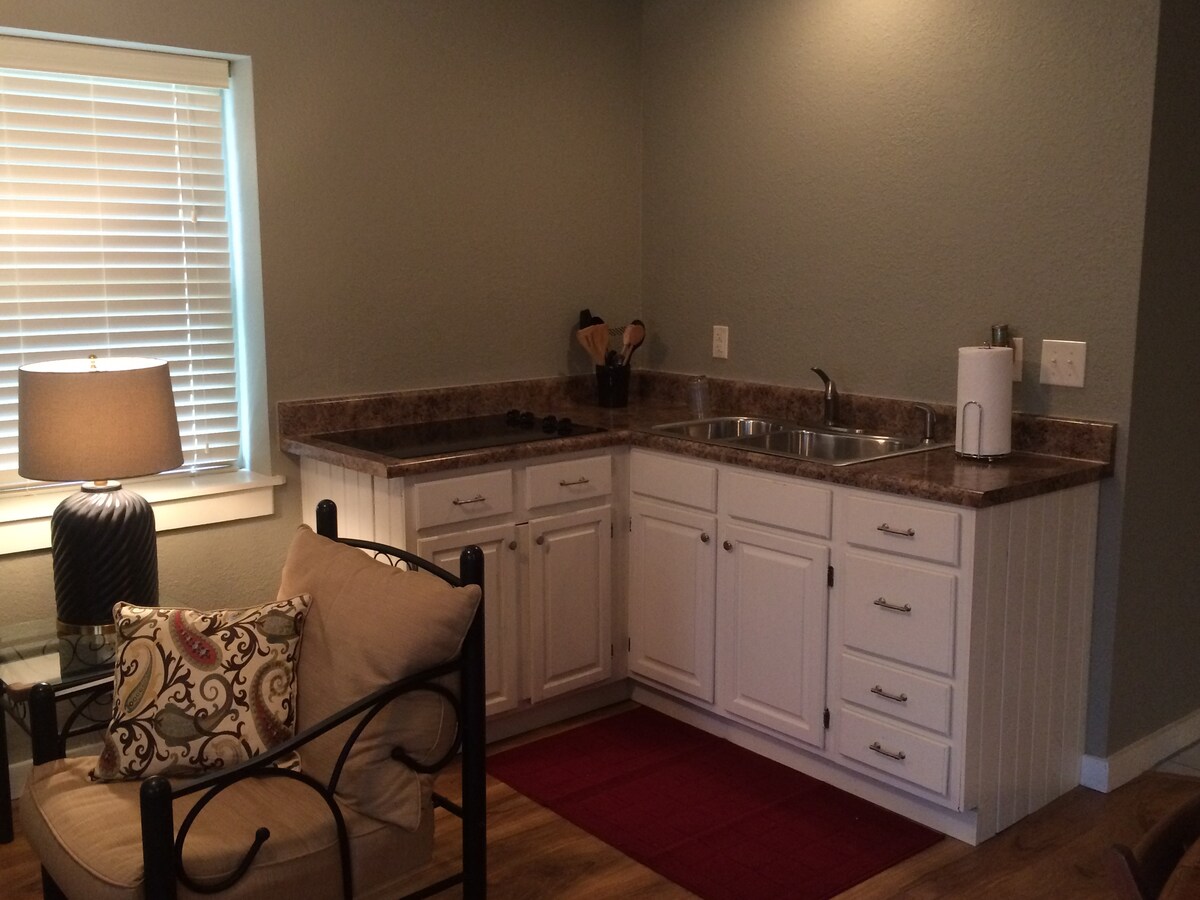 Un apartamento tipo estudio privado ubicado en nuestro sótano con entrada independiente y todas las comodidades de un hogar. A diez minutos del TIEC. Viene amueblado con baño completo, cocina con encimera, microondas, cafetera Keurig y nevera pequeña. Toallas y sábanas incluidas. Una zona exterior cubierta y privada con asientos, mesa y chimenea. Aparcamiento en el sitio en el nivel inferior de nuestra cabaña de madera. Sin gastos de limpieza.