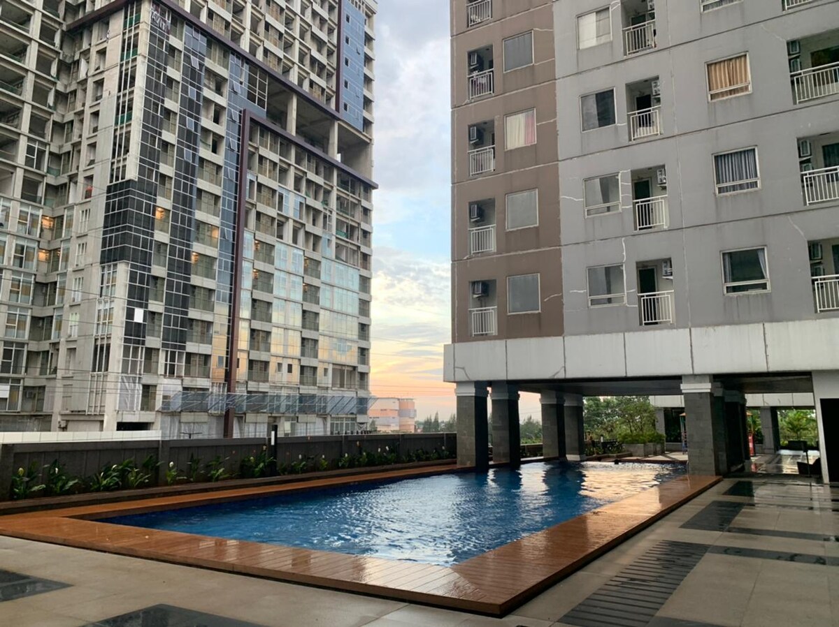 Apartamento Transpark Cibubur con piscina, vistas y Netflix