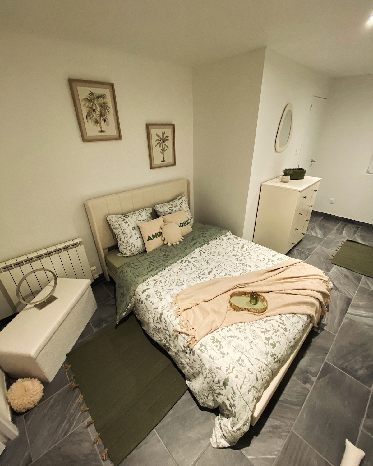 Relájese en este alojamiento tranquilo y elegante. Casa nueva de lujo de una sola planta situada en una calle sin salida tranquila y accesible a pie a los primeros servicios (panadería, supermercado, farmacia, estanco, pizzería, peluquería). Este alojamiento (tipo estudio) ideal para dos personas consta de una habitación principal con sofá cama de muy buena calidad (cama 140x190). Una cocina equipada y comedor con acceso a una terraza. Un cuarto de baño con inodoro. Aparcamiento