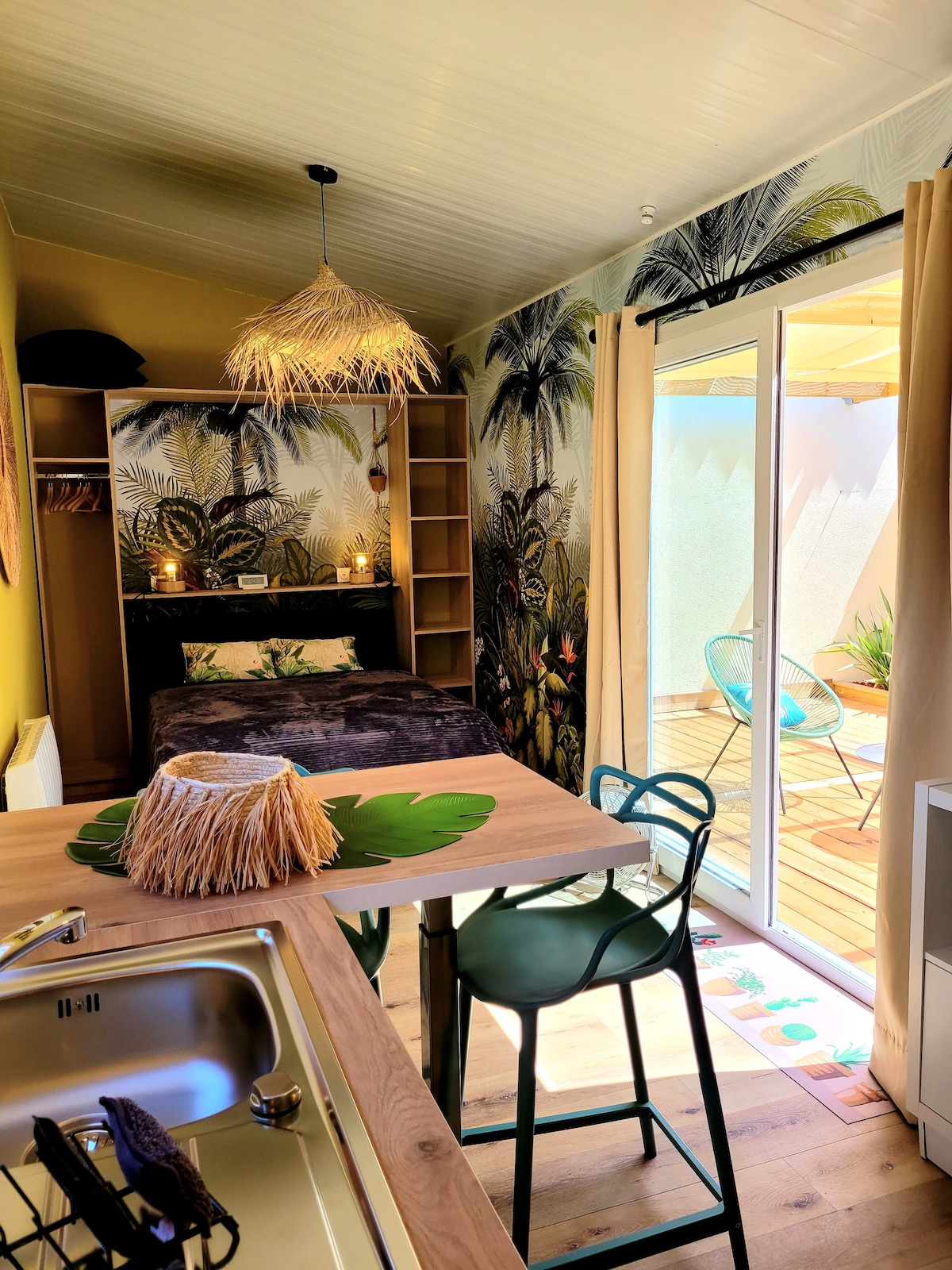 Una cálida bienvenida en alojamiento privado, entrada independiente), en un jardín familiar que incluye: - Una cama de 160 memoria de forma (sábanas opcionales) - Cocina, con placas de inducción, horno/microondas (+sofá convertible para 2 camas) - sala de estar - cuarto de baño con ducha y WC - Piscina Compartida climatizada y cubierta (en temporada) - TV/Wi-Fi - Estacionamiento cerrado para 1 automóvil - Autobús urbano: 8 minutos a pie (98) - Suplemento de 15€/cama para las sábanas posibles - No hay lavadora