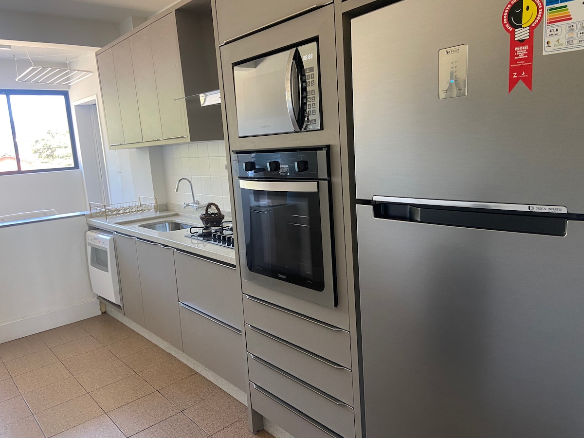 Precioso apartamento, amueblado, en el mejor condominio con piscina del sur del país - Marine Home Resort 1 dormitorio con suite con 1 cama doble y 1 cama individual, 1 baño, cocina, sala de estar, dos habitaciones, área de servicio, balcón con barbacoa. En la sala de estar hay 1 sofá cama súper cómodo y colchón inflable HABITACIONES CON AIRE ACONDICIONADO Wifi, televisor INTELIGENTE con NETFLIX en 2 TELEVISORES (IPTV) Cochera cubierta para 1 auto Condominio a 100m de la playa Cachoeira. Tiene un supermercado en la planta baja.