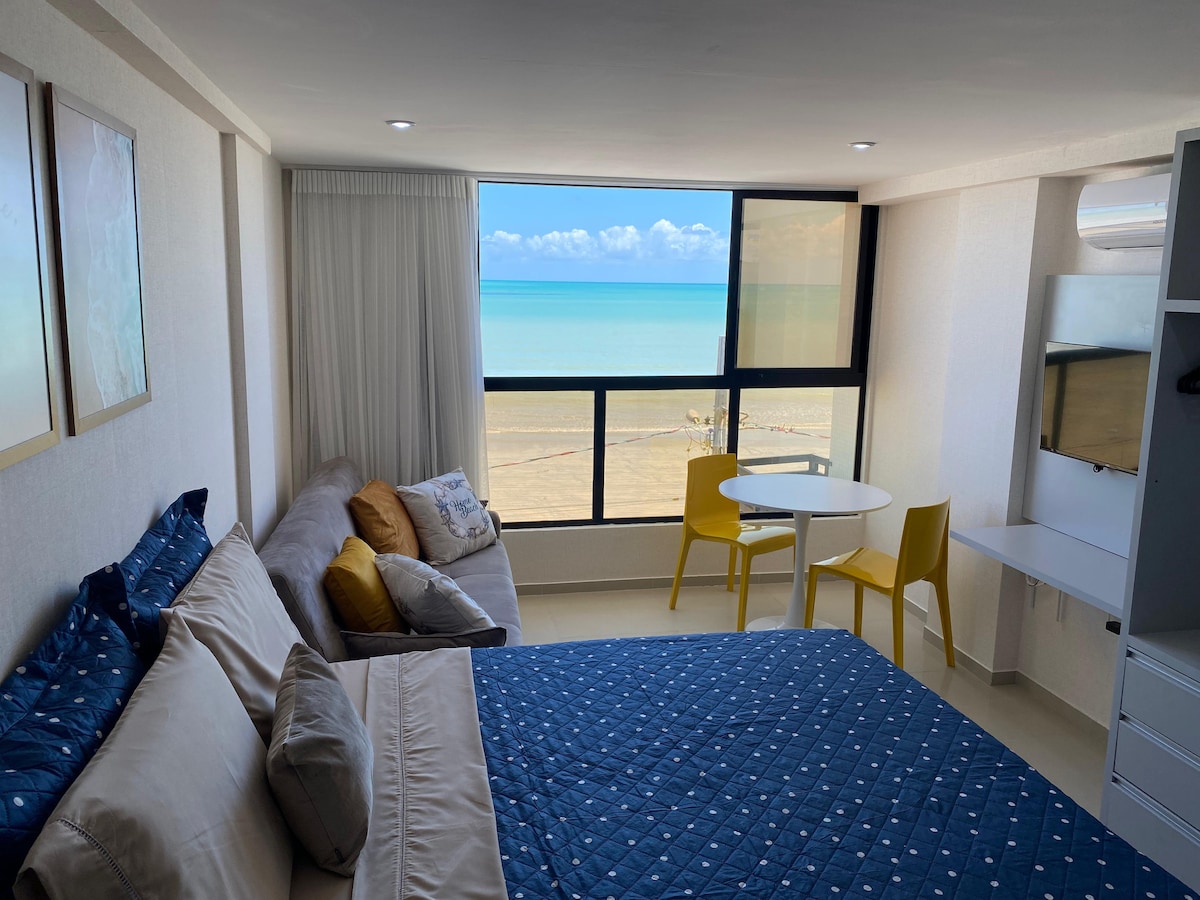 Piso NUEVO diseñado para su mejor experiencia en una de las playas más hermosas de João Pessoa. ¡NO SOMOS UNA RED HOTELERA! Tenemos un balcón con vista a la playa de Cabo Branco y tendrás a tu disposición: - Ropa de cama y baño - Wi-Fi - Smart TV - Cocina completa (minibar, cocina, microondas, cafetera expreso, sandwichera, platos, vasos, tazas, cubiertos, etc.) - Aire acondicionado - Zona común (piscina, restaurante, lavandería, garaje cubierto, máquina de hielo) - Recepción 24h