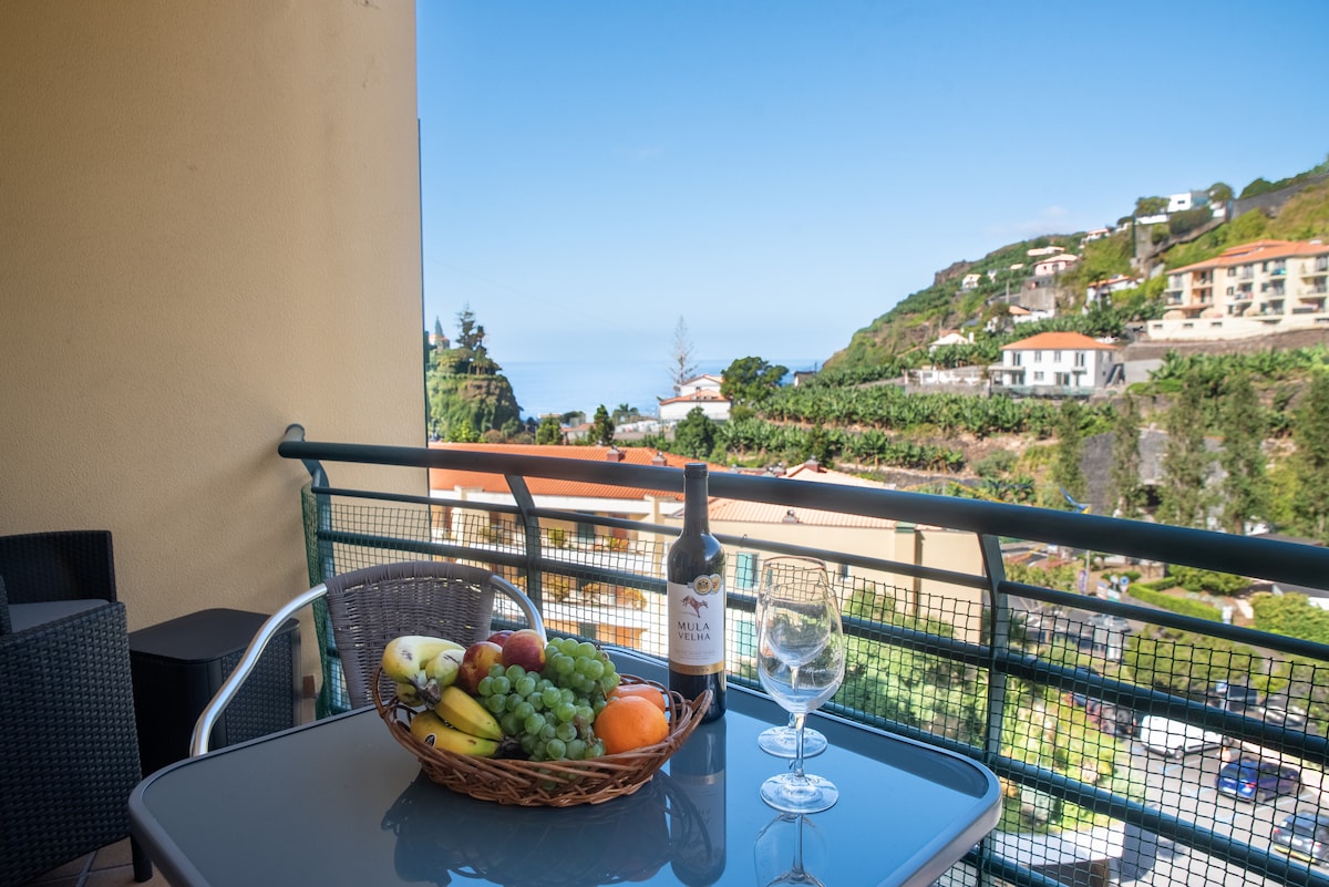 Modern studio in the sunny and serene, sunny village of Jardim do Mar, south west of Madeira Island. Studio G features an open plan design with kitchenette, lounging area with TV (with Netflix), a cozy king sized bed, a spacious bathroom and a private south facing balcony with ocean and pool view. We provide free Wi-Fi and free parking (the property is a minute walk from the village's centre and the main free parking lot).