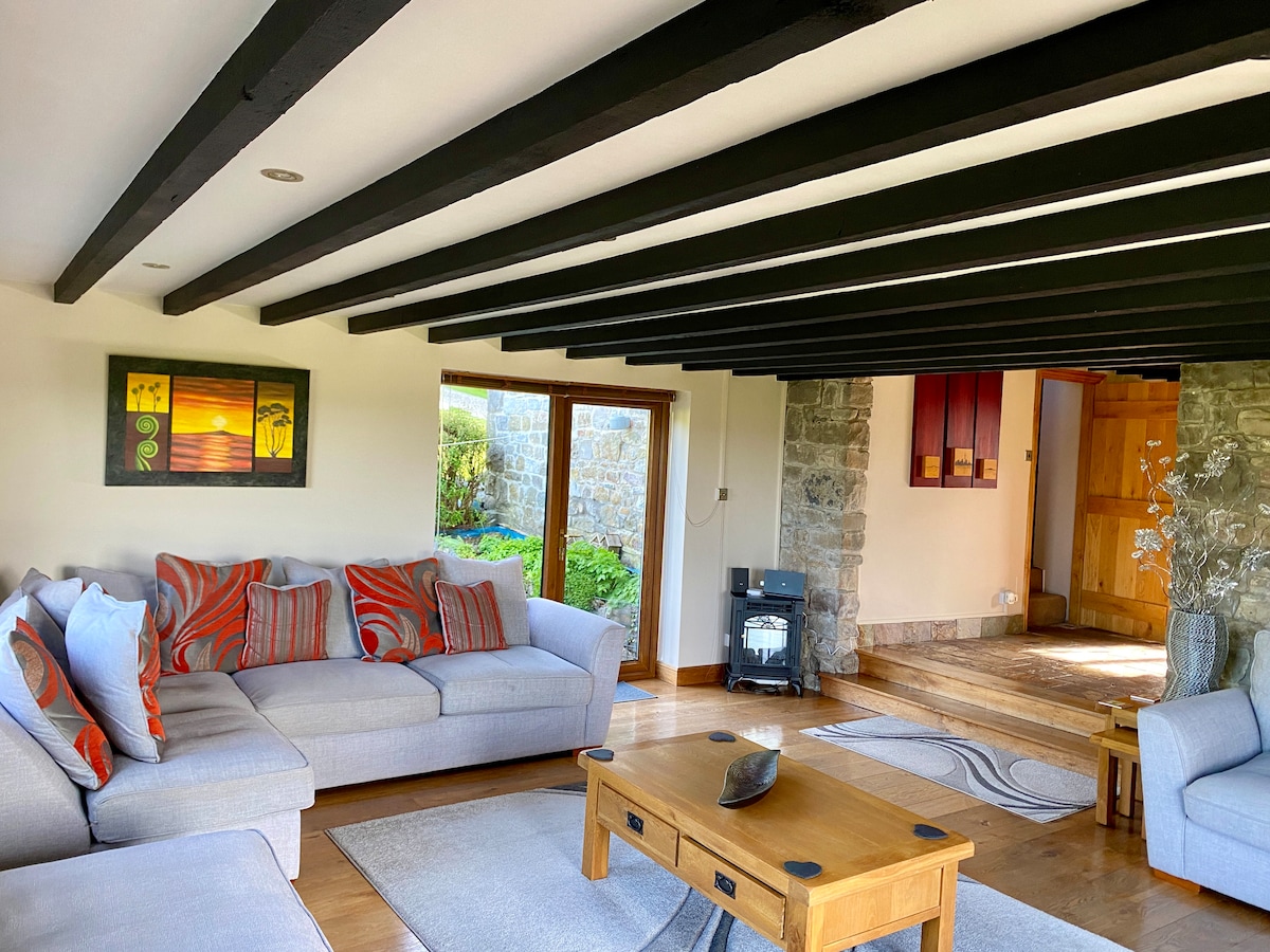 Sumérgete en este idílico granero reconvertido en una casa, ubicado en la campiña de Gales del Sur, cerca de Gower y Pembrokeshire. Con 7 acres de encantador bosque, un sereno estanque y una encantadora casa de verano, esta propiedad es el sueño de un amante de la naturaleza. Las noches junto a la chimenea crean un refugio acogedor en todas las estaciones. Disfruta de la armoniosa mezcla de confort moderno y encanto rural. Tu santuario te espera en este paraíso atemporal. ***No es una casa de fiestas ni es adecuada para despedidas de soltero/a***