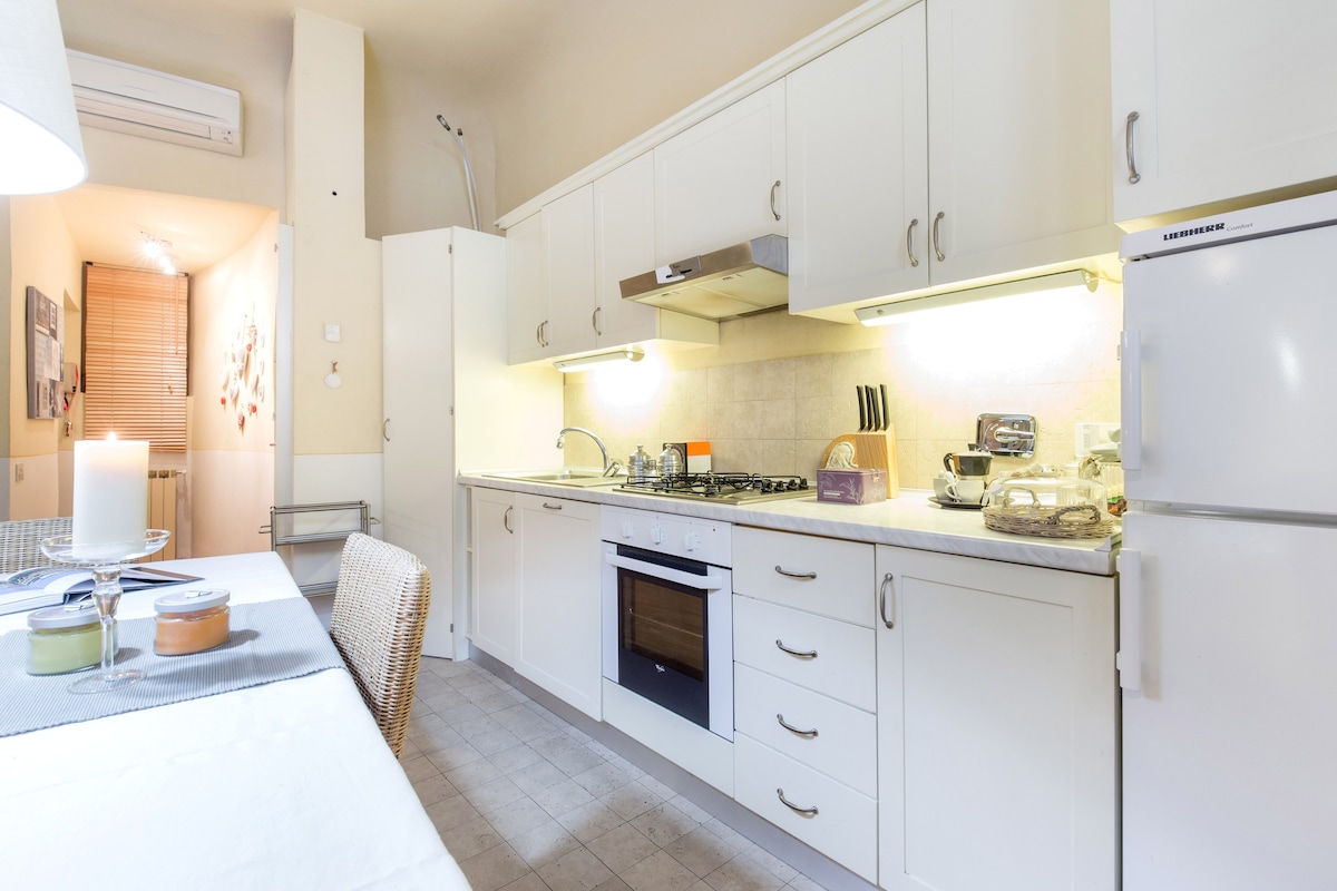 El apartamento se encuentra en Borgo Santi Apostoli, en un hermoso edificio del siglo XV a pocos metros del Ponte Vecchio y de la Via de' Tornabuoni, la zona más exclusiva de Florencia, hogar de las boutiques de moda más prestigiosas de la ciudad. También está a pocos minutos a pie de todas las iglesias y monumentos principales. El departamento está totalmente equipado con aire acondicionado, incluye una pequeña cocina, una cama tamaño queen y un sofá cama para una tercera persona. El Renacimiento florentino en su máxima expresión :)