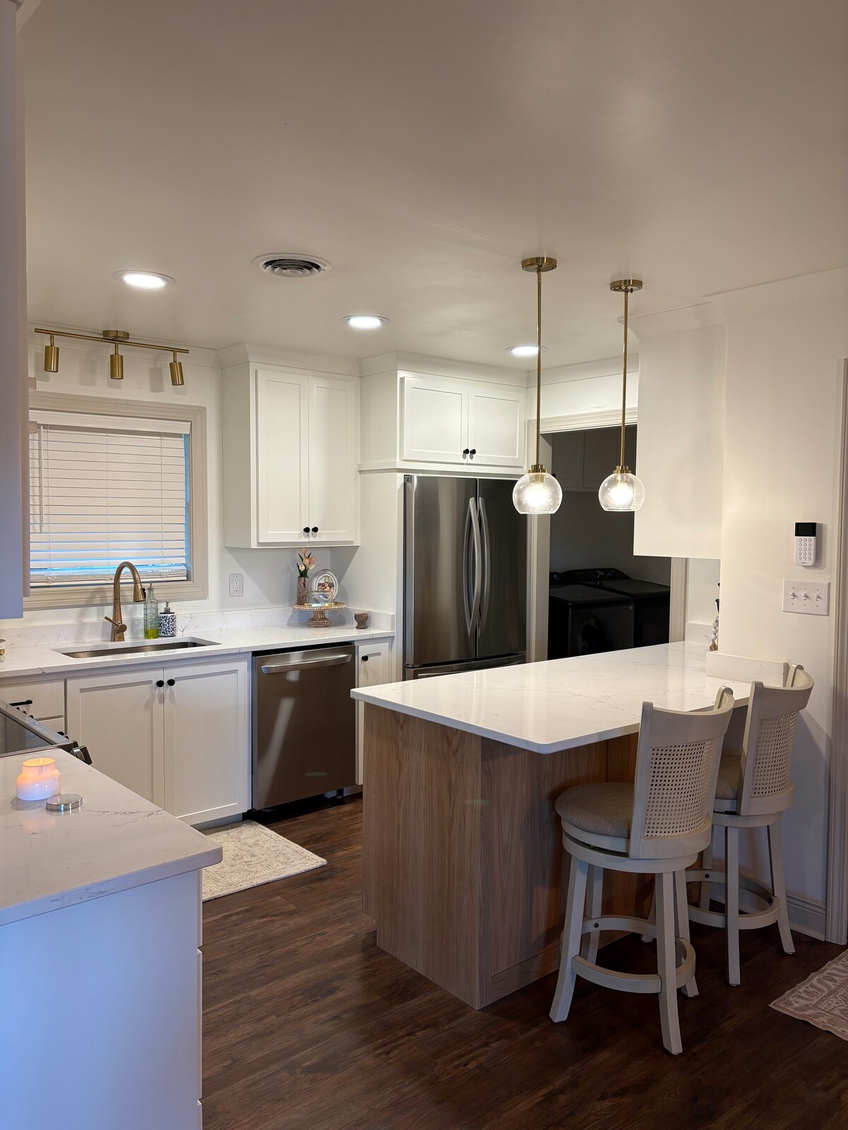 Kick back and relax in this calm, stylish space. Our Lake House has a nice living room with comfortable seating, equipped with a large screen TV and Fiber internet 2 Bedrooms- 1 King bed, and 1 Queen bed both bedrooms have adjacent bathrooms A fully furnished Kitchen with, dishwasher, refrigerator/freezer/ice maker, stove, microwave, coffee maker, toaster, dishes etc. Laundry room with washer/dryer dirty clothes hamper, folding station. Carport 24x24 w/roof. Patio and deck overlooking lake