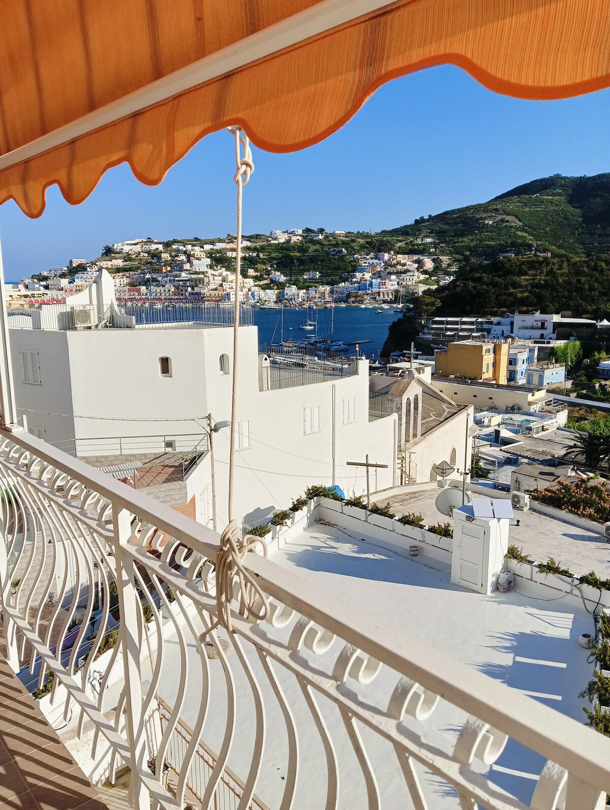 Apartamento equipado con dos habitaciones tamaño queen,un baño,cocina y sala de estar. Terraza con vistas al mar. Zona de tumbonas con ducha también en el exterior. Situado en el centro de la isla, en la zona de Le Forna. Fácilmente accesible en autobús. Llegue al puerto,tome cualquier autobús a Le Forna,bájese en Via Sottocampo,cruce la carretera y camine por la carretera. A unos 300 m (2 minutos) a la izquierda encontrará una puerta de madera. ¡¡Siete en casa!!