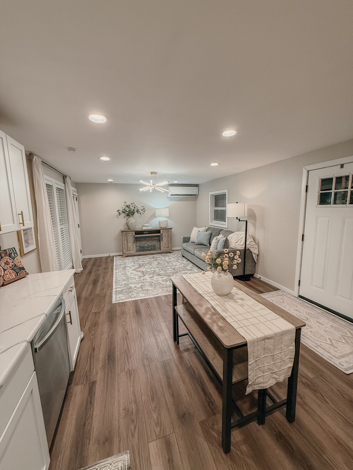 Alójate en esta casa tranquila y céntrica con patio vallado. La casa ha sido completamente reformada y se encuentra a 5 cuadras de la Universidad de Evansville y a 7 minutos del centro de Evansville para conciertos, espectáculos y convenciones. La casa está en un vecindario tranquilo y seguro y está a 15 minutos de cualquier lugar de la ciudad. La casa tiene 2 dormitorios, cada uno con una cama tamaño queen, con capacidad para 4 personas en total. Una cama tamaño queen tiene una base ajustable para ajustar la cabeza y las piernas en varias posiciones para la máxima comodidad