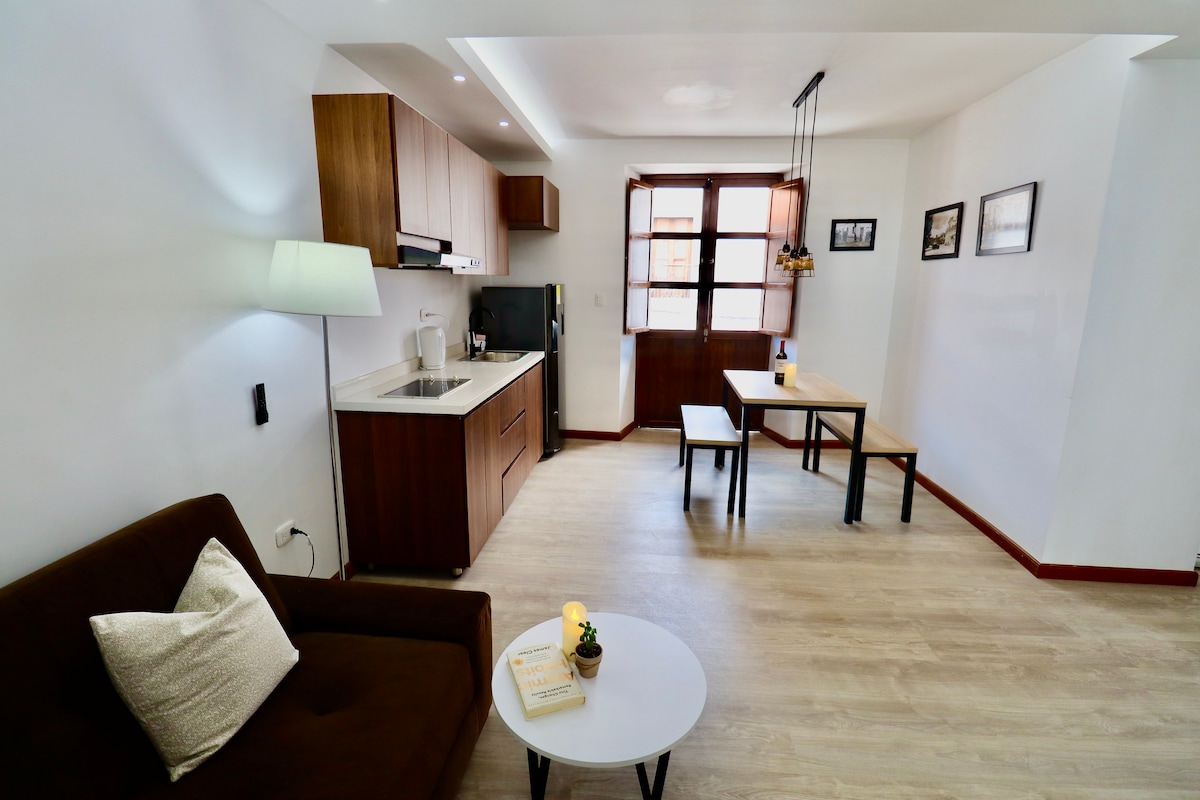 Welcome to our modern hideaway vacation rental nestled in the heart of Popayan's historic colonial city center. Our open-plan apartment is located at the back of the building, offering a seamless blend of historic charm and contemporary comfort. Located just steps away from churches, museums, restaurants, and cafes, it offers easy access to all the treasures of The White City. Our space is ideal for short and long-term stays with all the amenities you'll need.