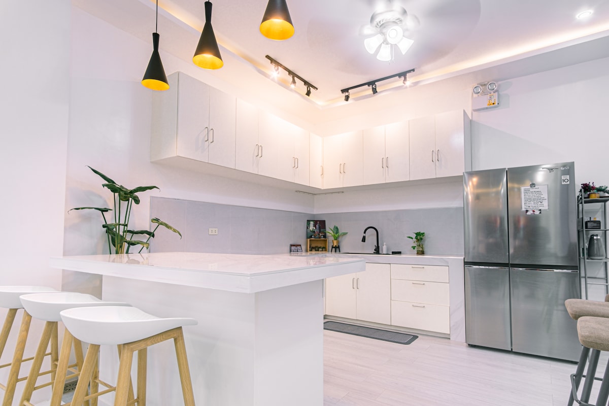 Una NUEVA casa espaciosa de 4 dormitorios en la subdivisión L&S Pampanga con cocinas dobles y lavandería cerca del aeropuerto Clark 🍃 Disfruta de cocinas dobles, un elegante espacio interior y una cocina sucia totalmente equipada con un área de lavandería con 2 lavadoras y secadoras de grado comercial. 🧺 Relájate en la acogedora sala de estar con sofás y un televisor de 75". 🛋️ Las habitaciones incluyen un baño privado, un estudio y una habitación compacta con literas. Con 2 baños compartidos y estacionamiento en el garaje para 2 coches. Atracciones clave: Aeropuerto Clark, SM Clark/Telebastagan, Aqua Planet