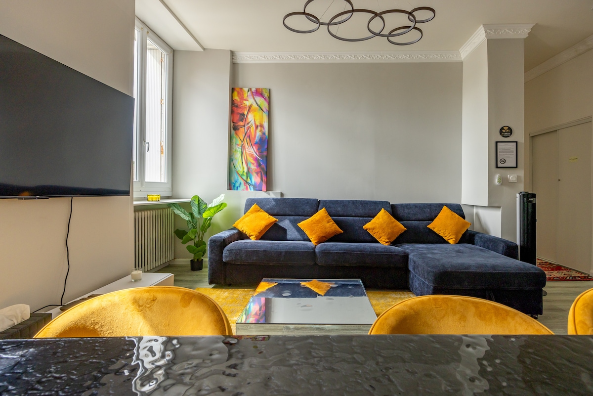 Amplio T3 de 80 m² reformado, que combina comodidad, tranquilidad y servicios de alta gama. Ideal para familias o viajes de negocios, tiene capacidad para 7 personas con ropa de cama de calidad, fibra y una sauna privada para relajarse. Ambiente cálido, entorno tranquilo. Situado a 5 minutos a pie del tranvía y cerca del intercambiador, el centro de Nantes es accesible en 10 minutos en coche. Un lugar pensado para sentirse como en casa, tanto en viajes de negocios como de placer.